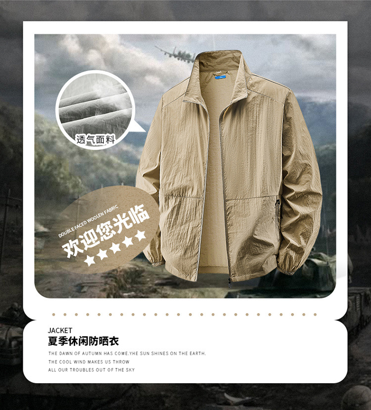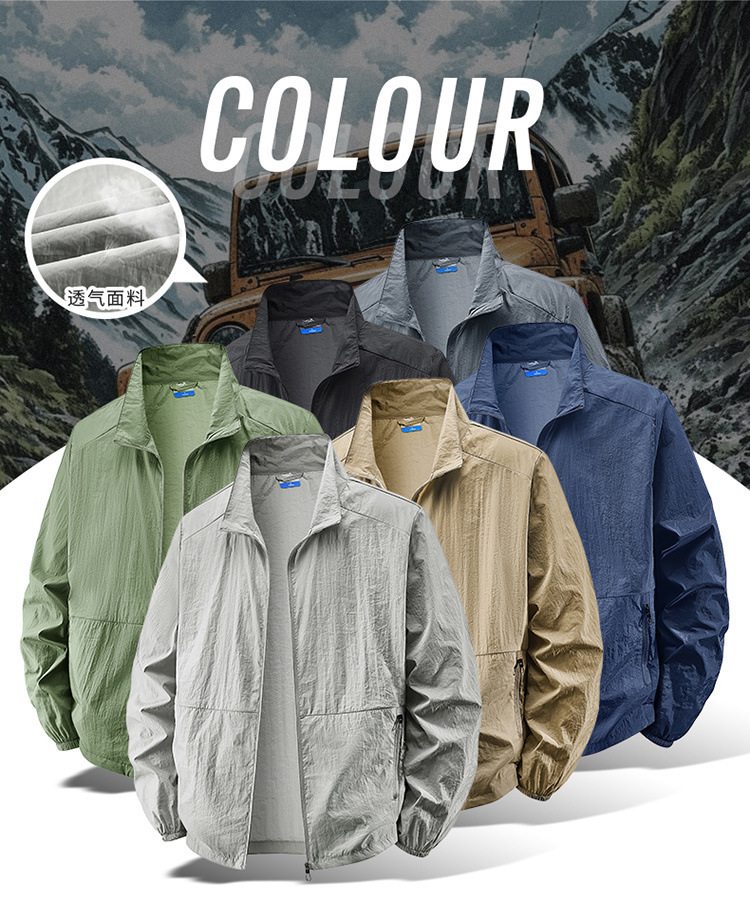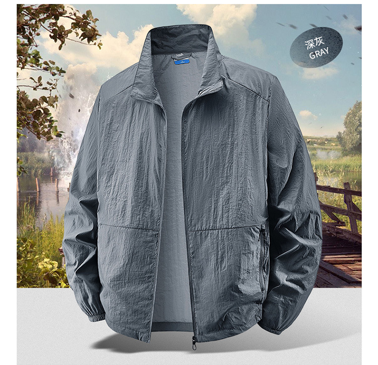 여름 남성 자외선 차단 의류, 야외 캐주얼 재킷, 스탠드 칼라, 루즈한 대형 사이즈, 속건성, 얇은 피부 의류, 청소년 재킷스토어 가기
