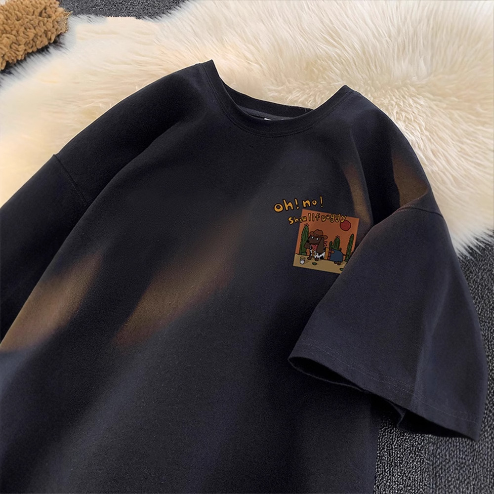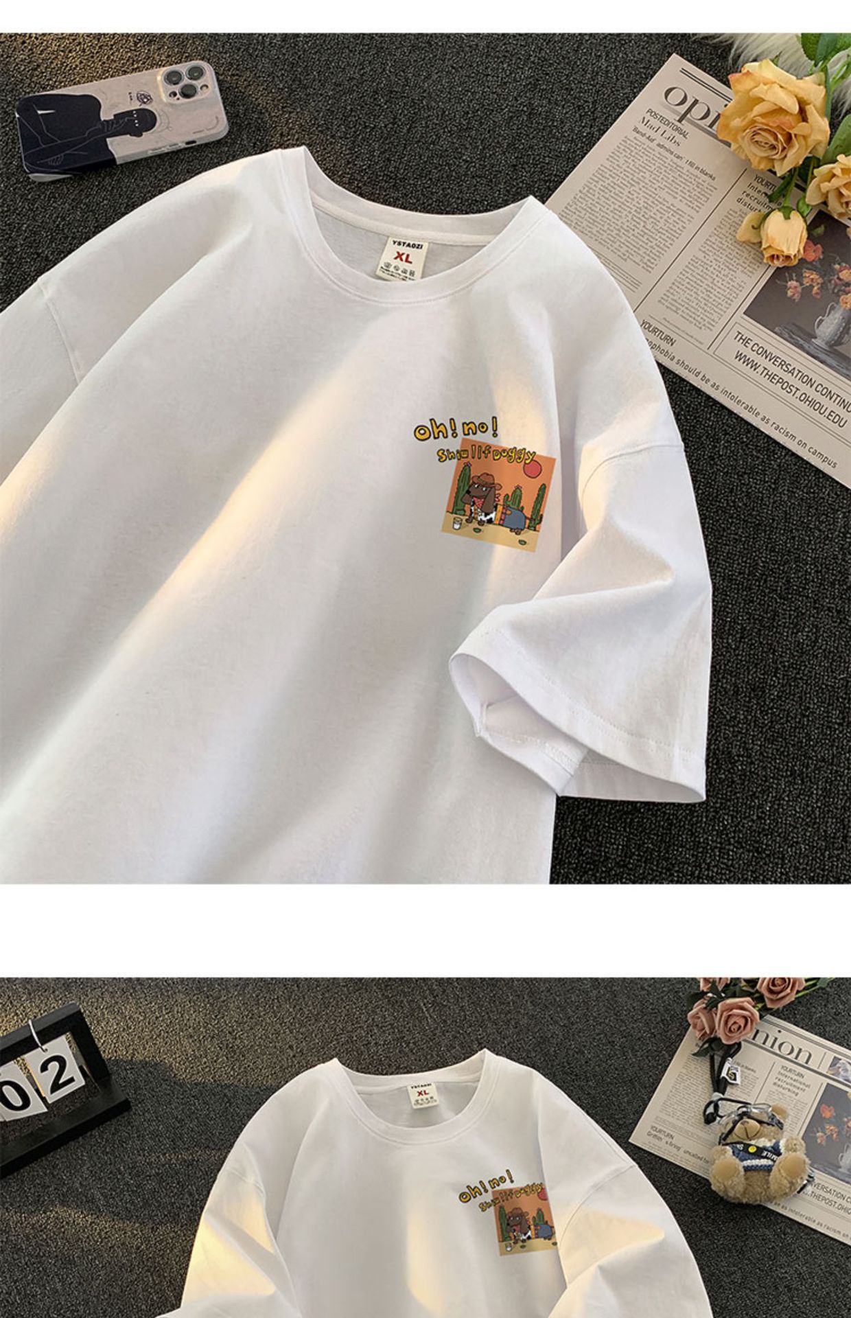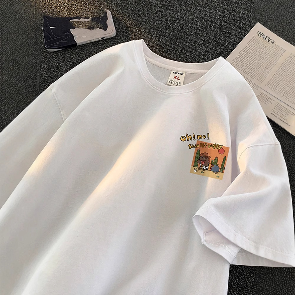 아메리칸 루즈 스몰 프린트 반팔 티셔츠 남성 여름 오버사이즈 게으른 홍콩 스타일 bf 커플 반팔 탑스토어 가기