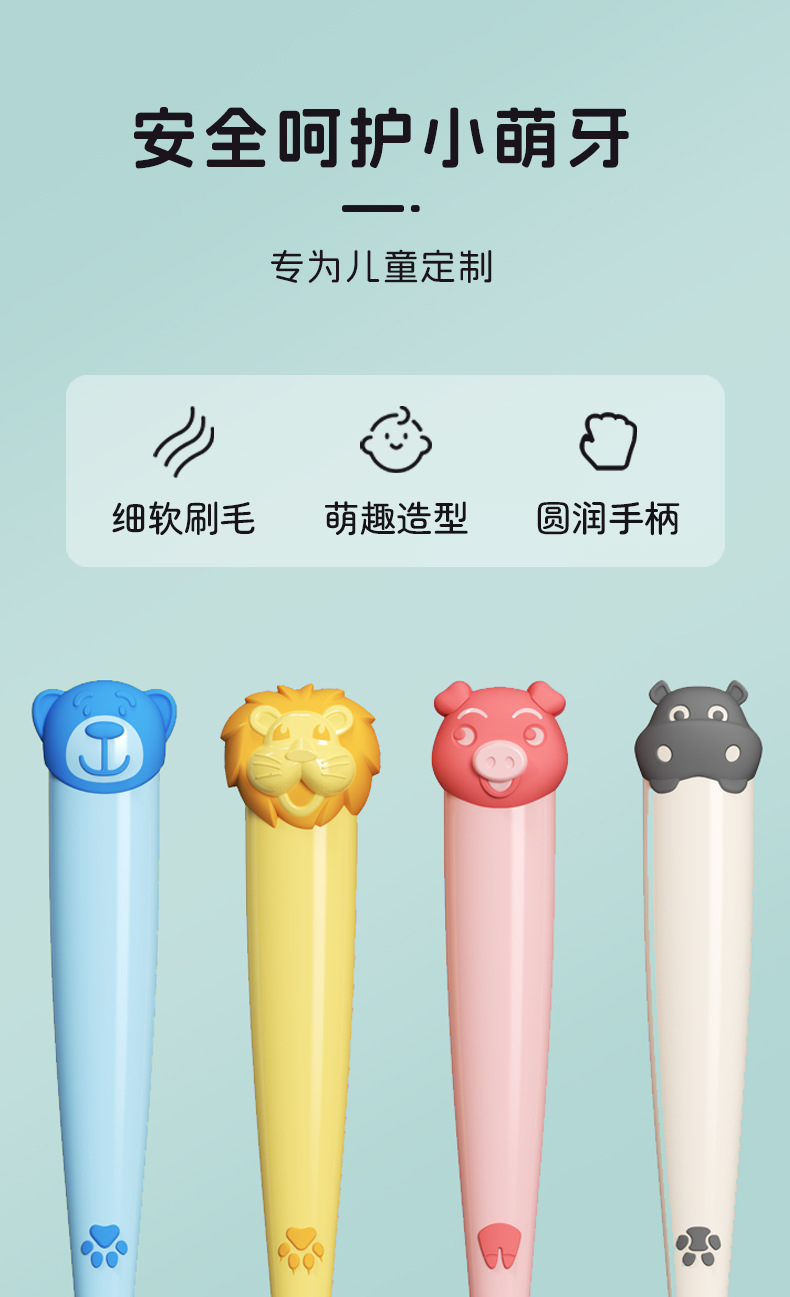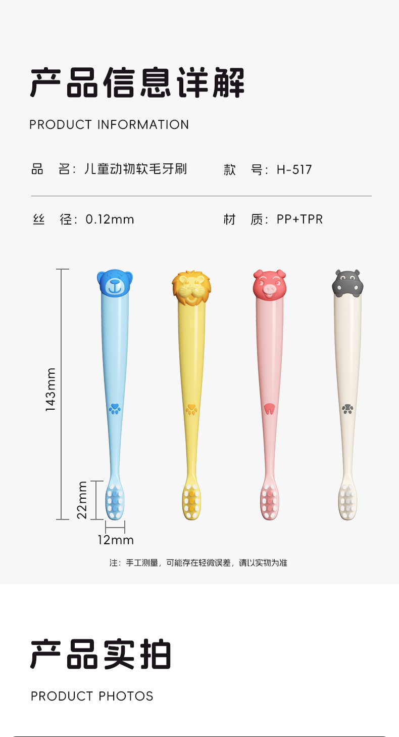 • 어린이 동물 만화 부드러운 강모 칫솔 517 싱글 팩