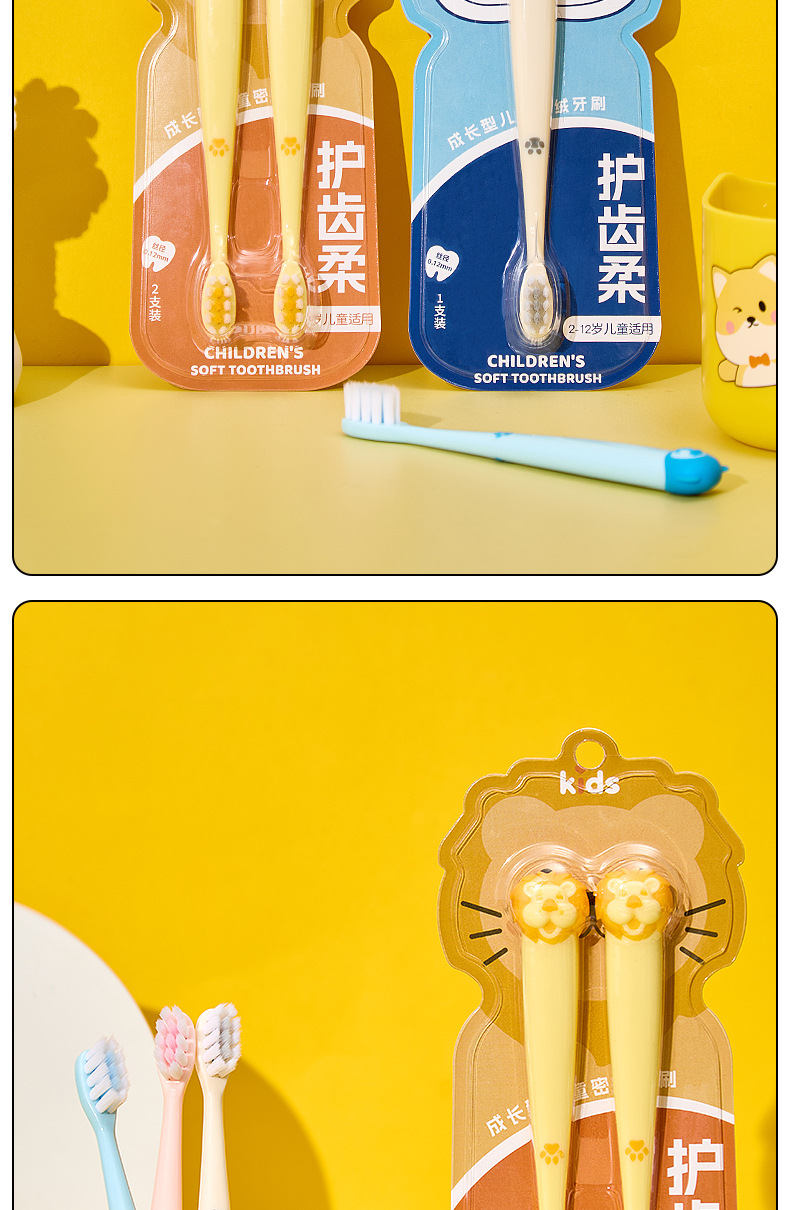 • 어린이 동물 만화 부드러운 강모 칫솔 517 더블 팩