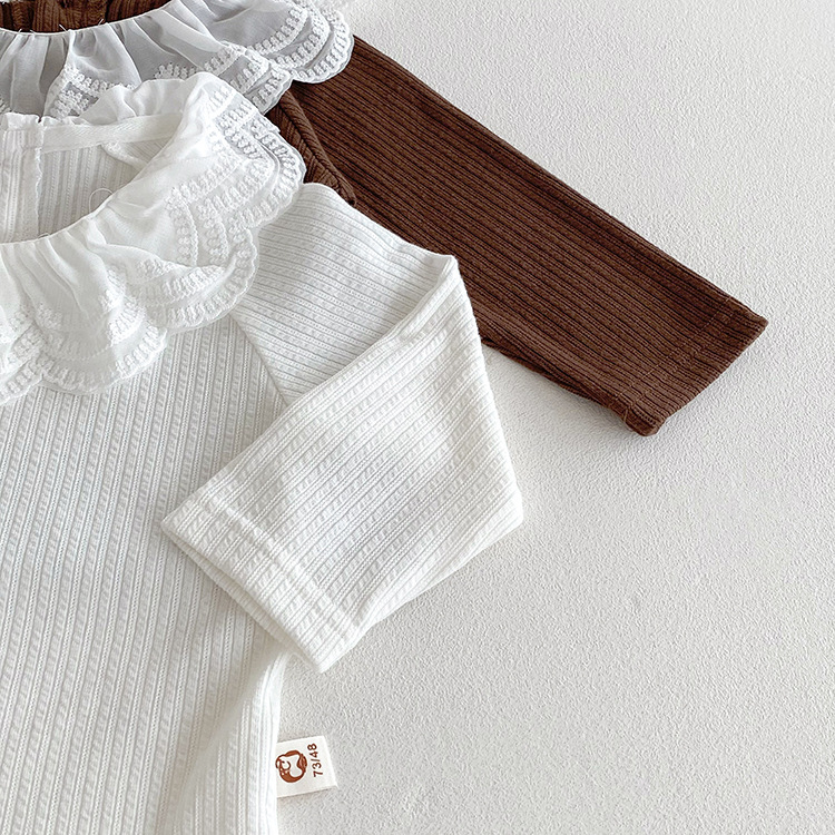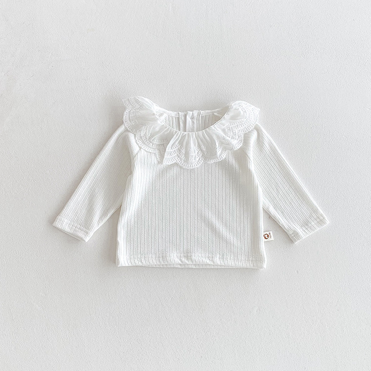 여아용 셔츠, 봄 여아용 순면 스타일 공주 레이스 칼라 탑, 흰색 긴팔 티셔츠, 봄, 가을 의류