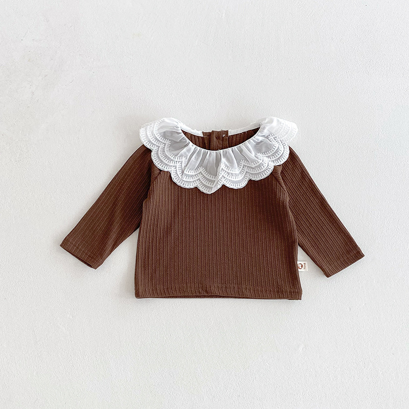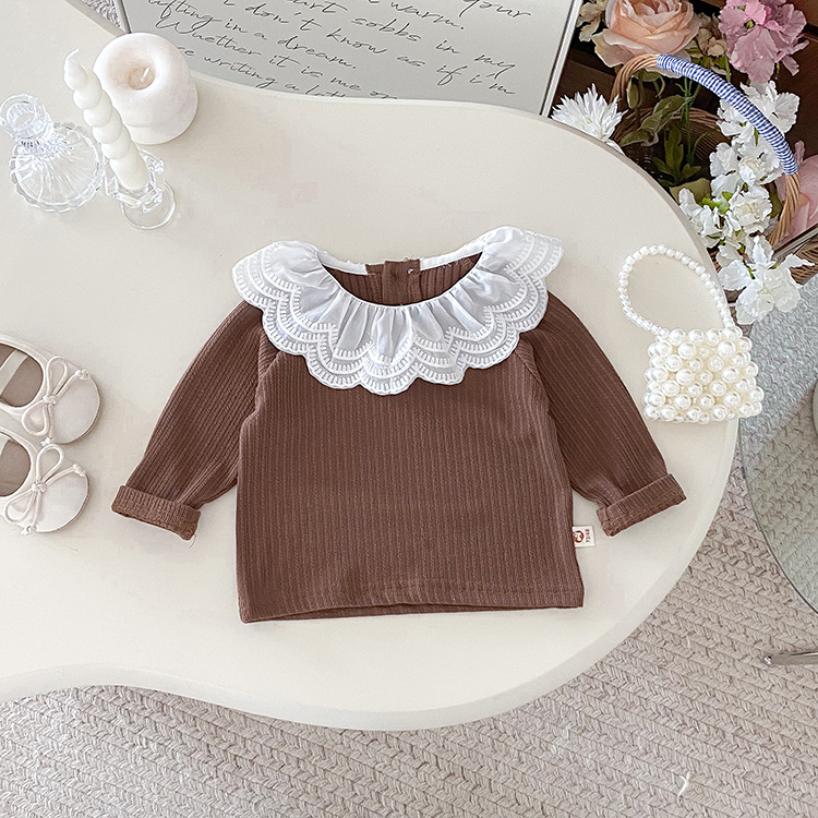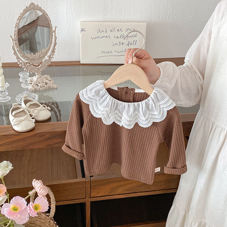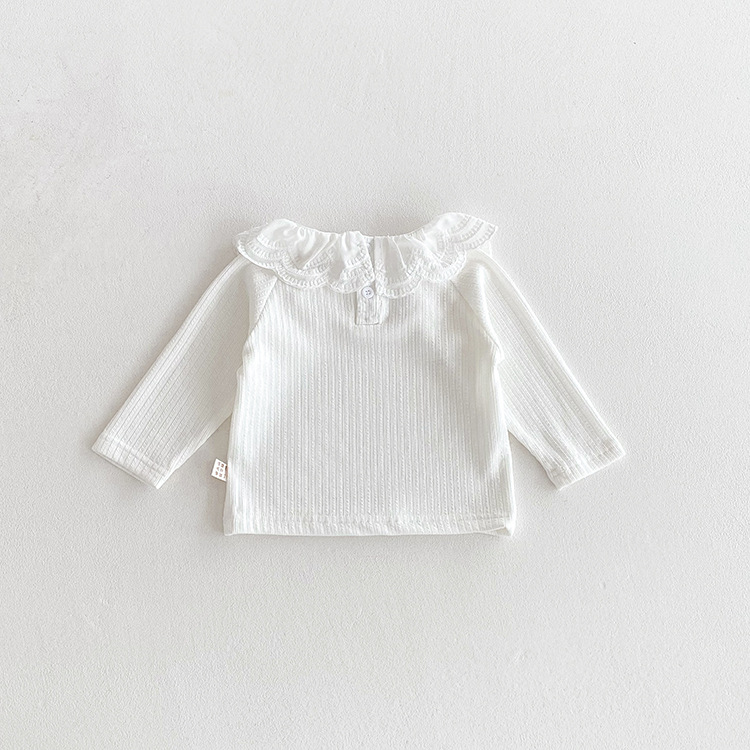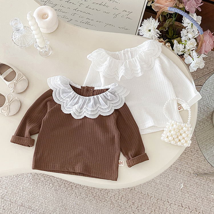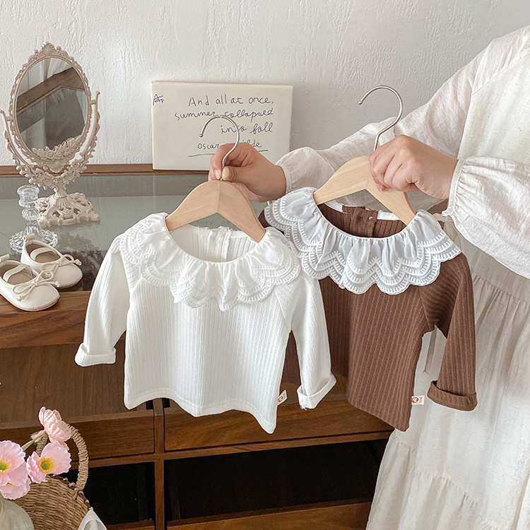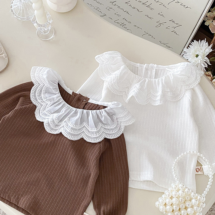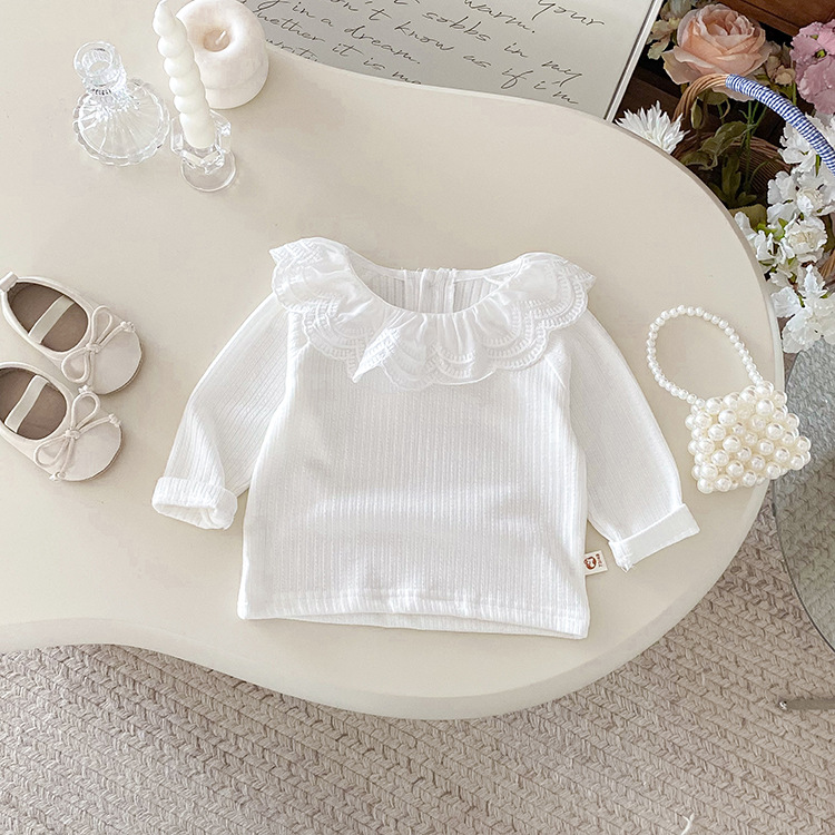 여아용 셔츠, 봄 여아용 순면 스타일 공주 레이스 칼라 탑, 흰색 긴팔 티셔츠, 봄, 가을 의류스토어 가기