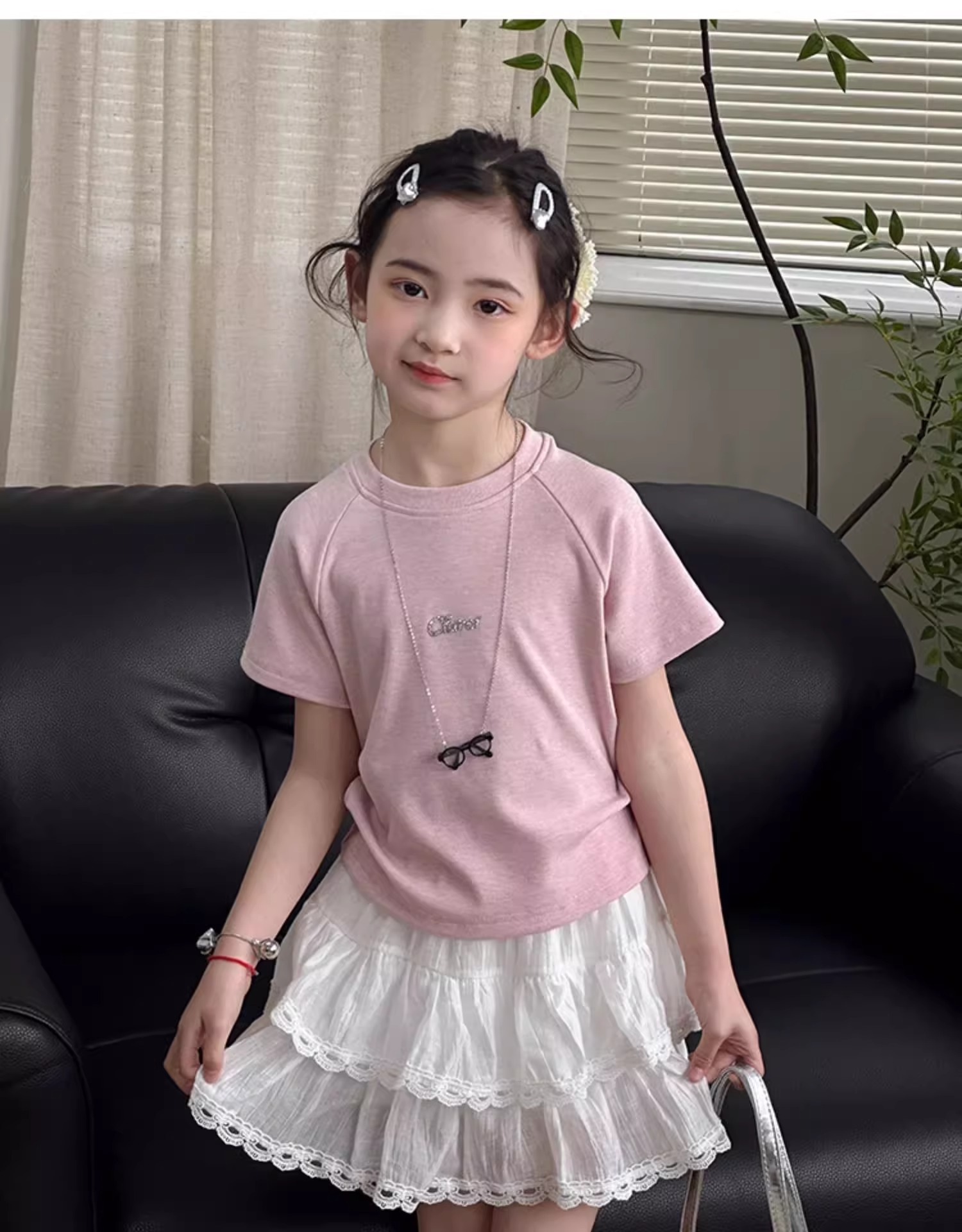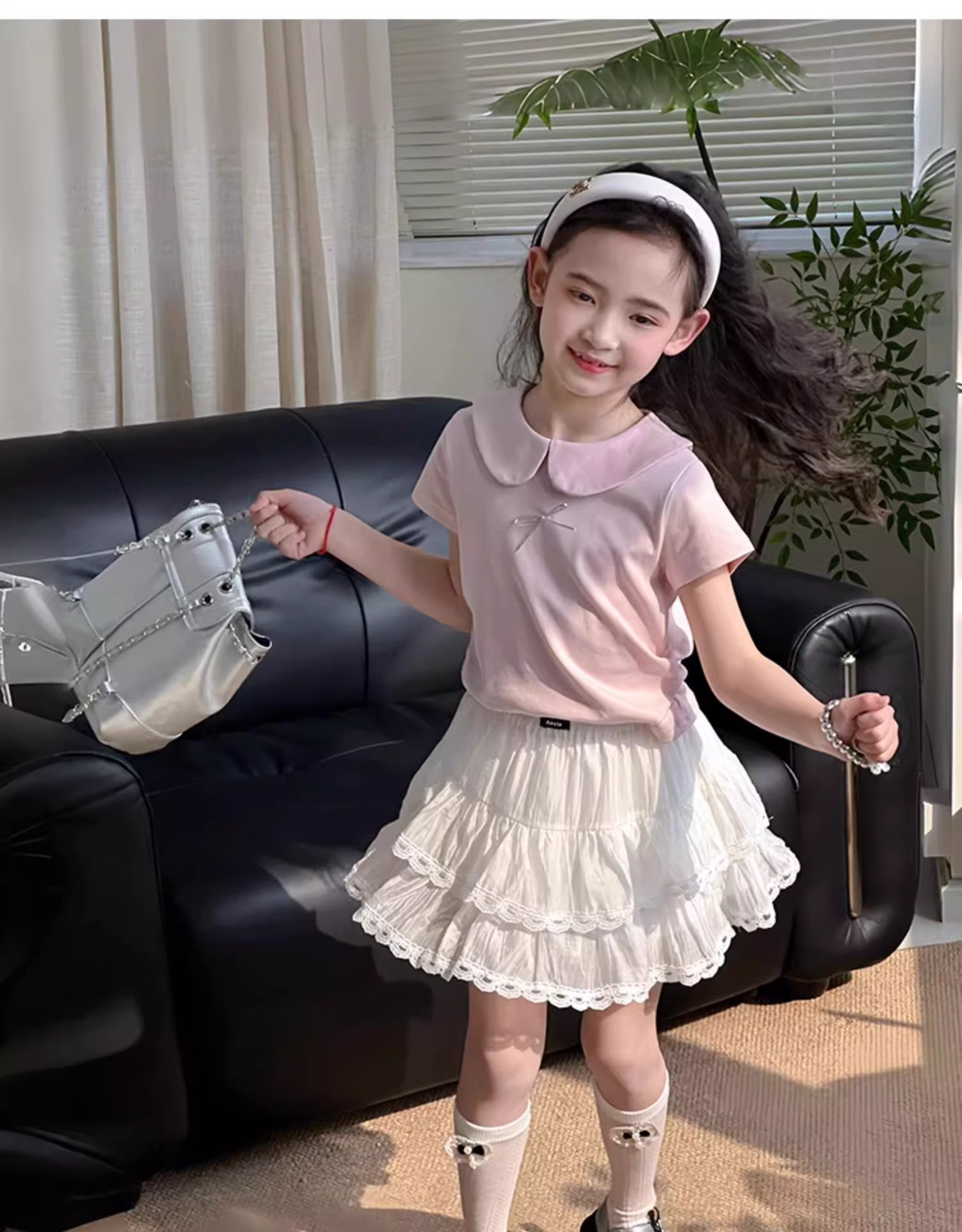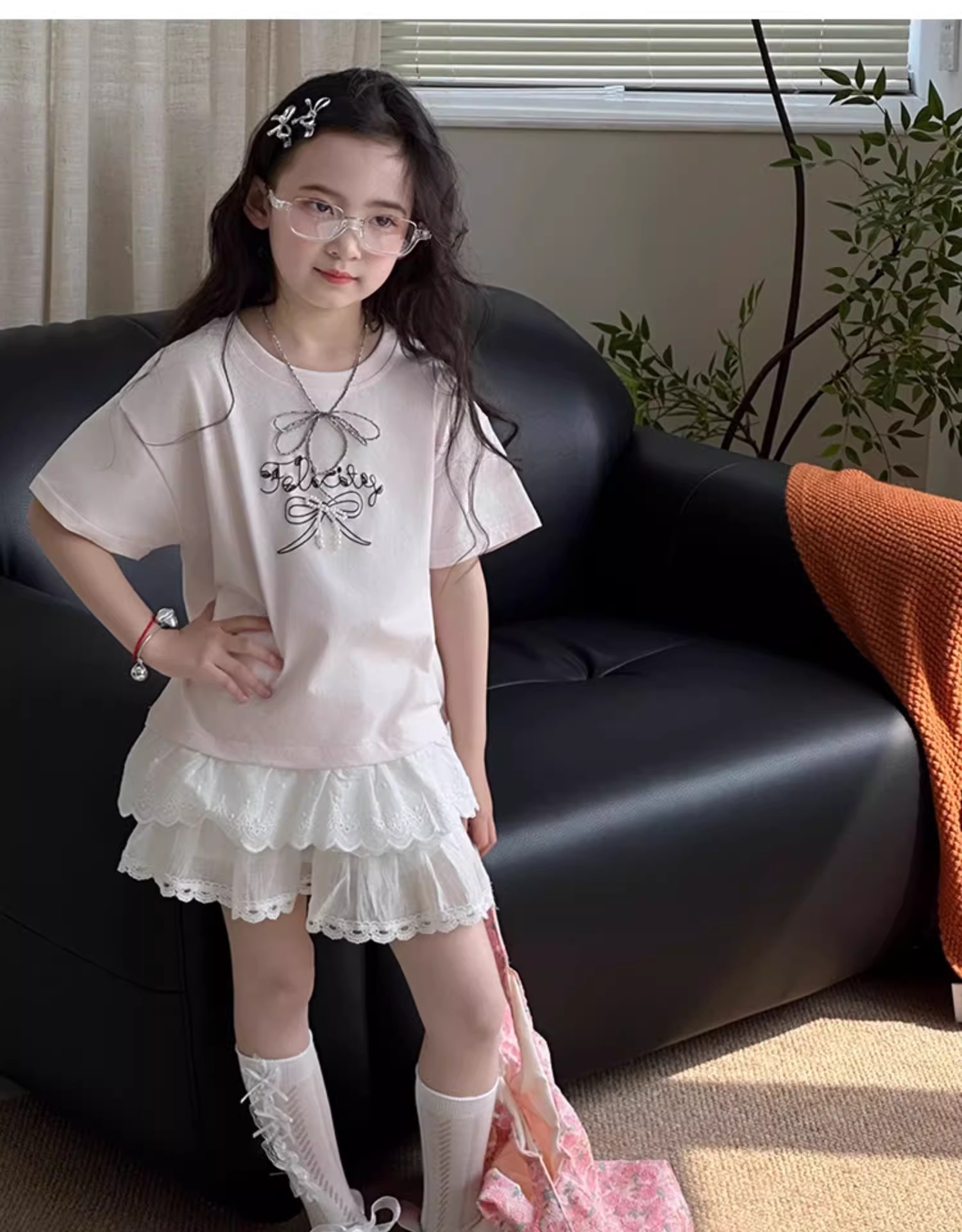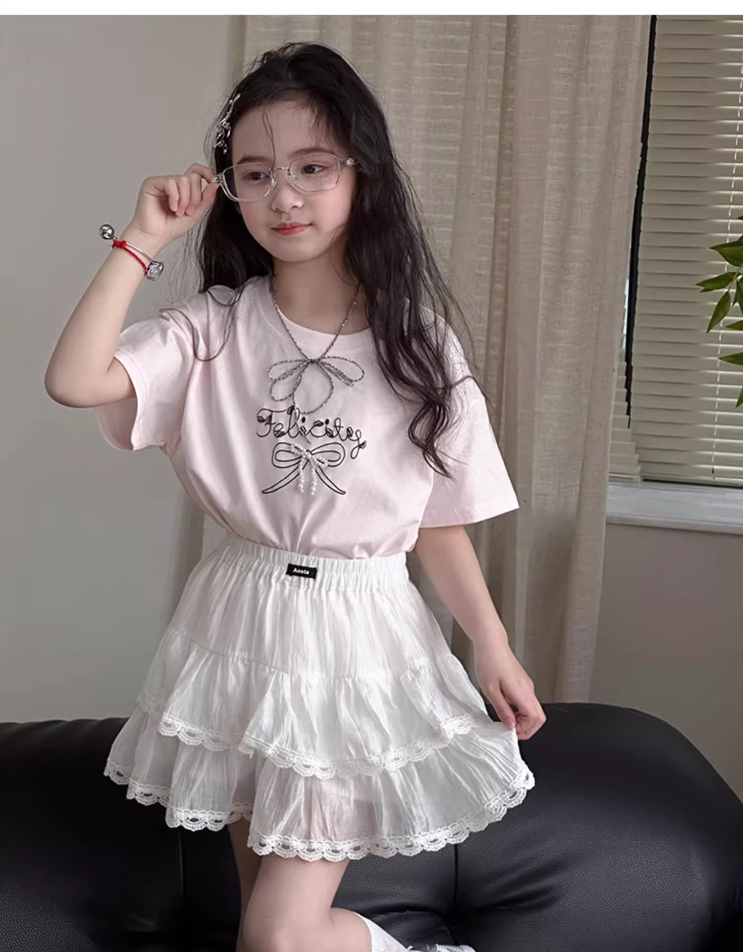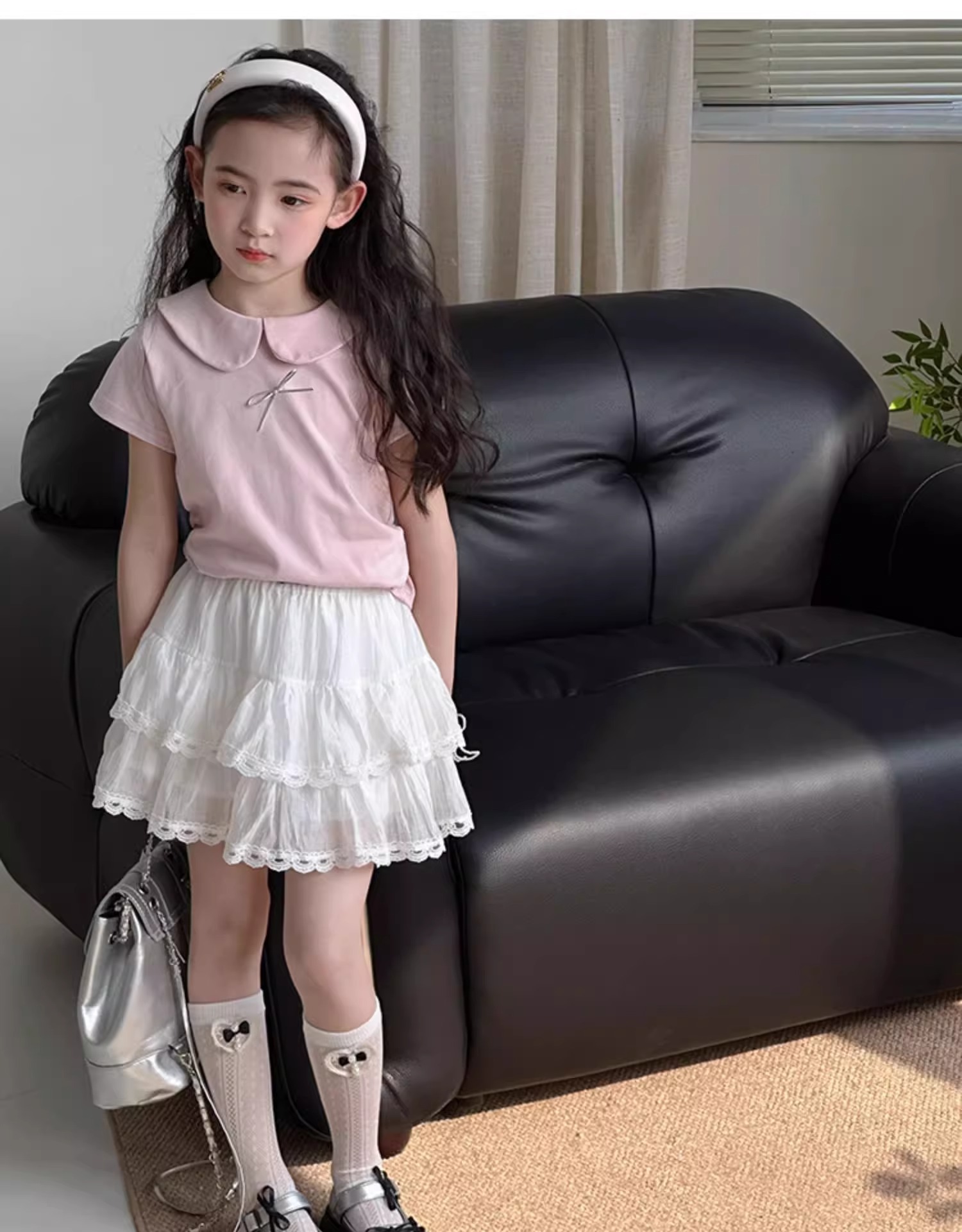 여자 치마 2025 여름 새로운 어린이 서양식 짧은 치마 큰 어린이 레이스 스커트 한국 캐주얼 스커트스토어 가기