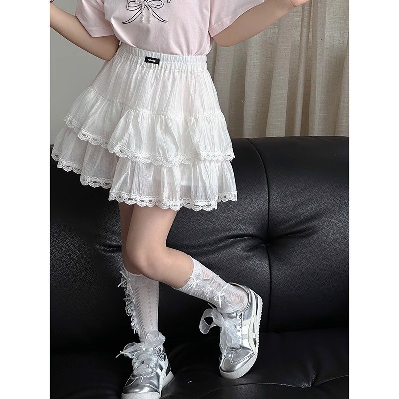 여자 치마 2025 여름 새로운 어린이 서양식 짧은 치마 큰 어린이 레이스 스커트 한국 캐주얼 스커트