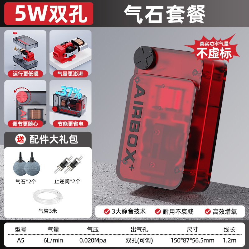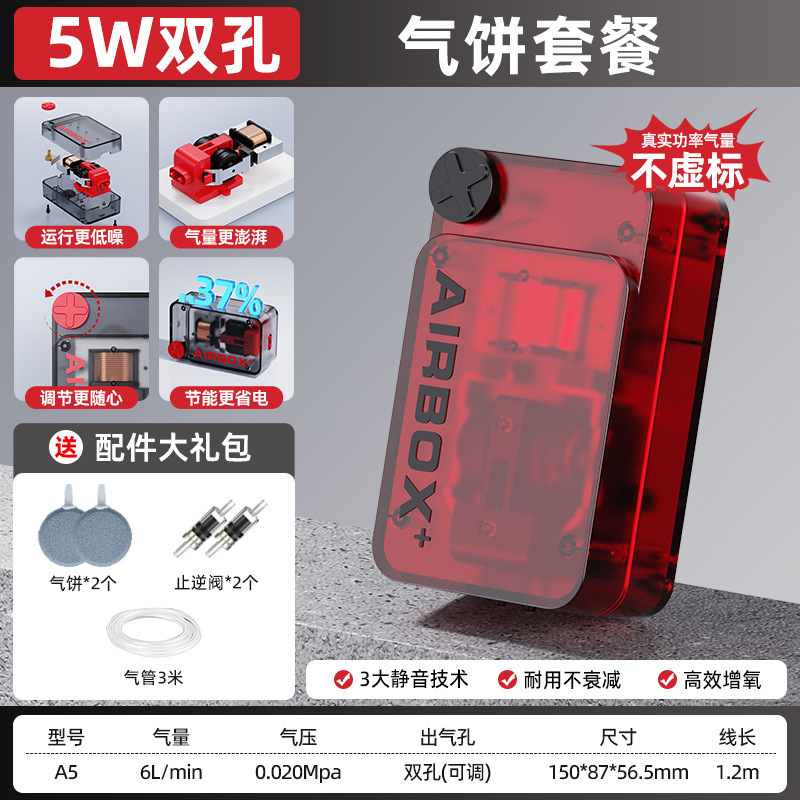 • 수심 50cm 이내 적합한 레드 5w 더블 홀 에어스톤 패키지