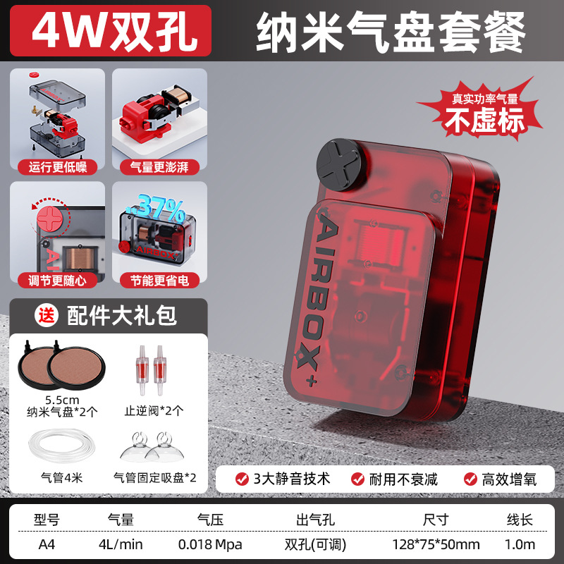 • 수심 50cm 이내에 적합한 빨간색 4w 이중 구멍 에어 스톤 패키지