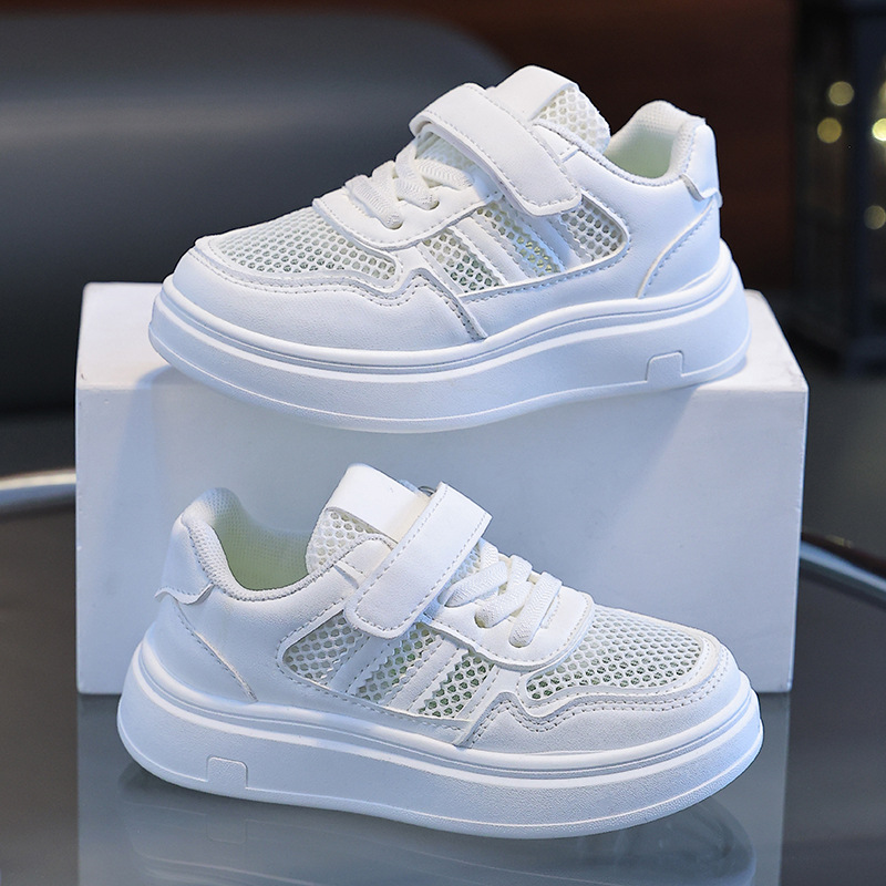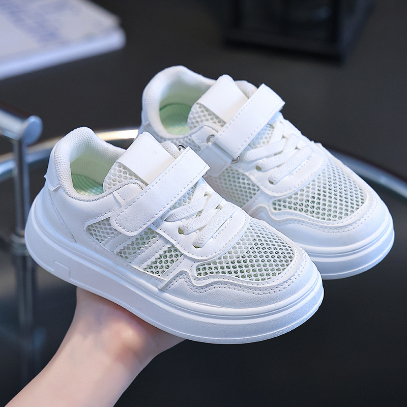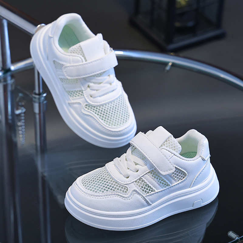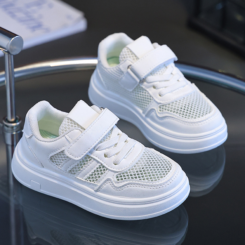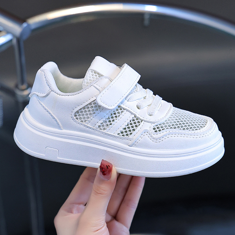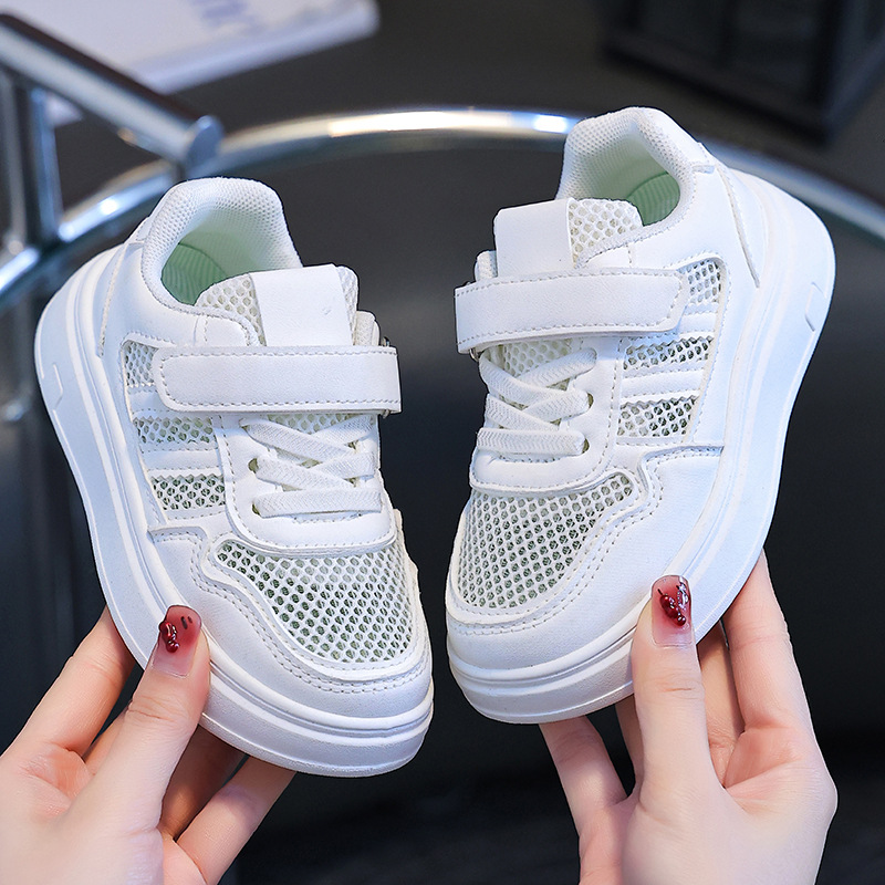 여름 어린이 흰색 신발 통기성 메쉬 캐주얼 메쉬 신발 소년과 소녀 유치원 학생 순수한 흰색 운동화