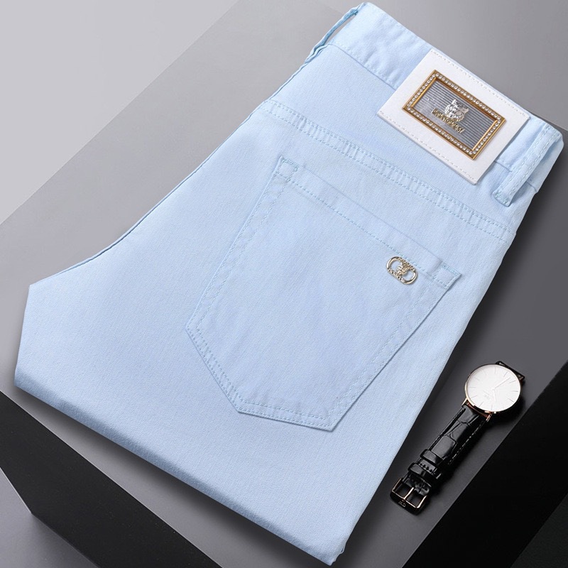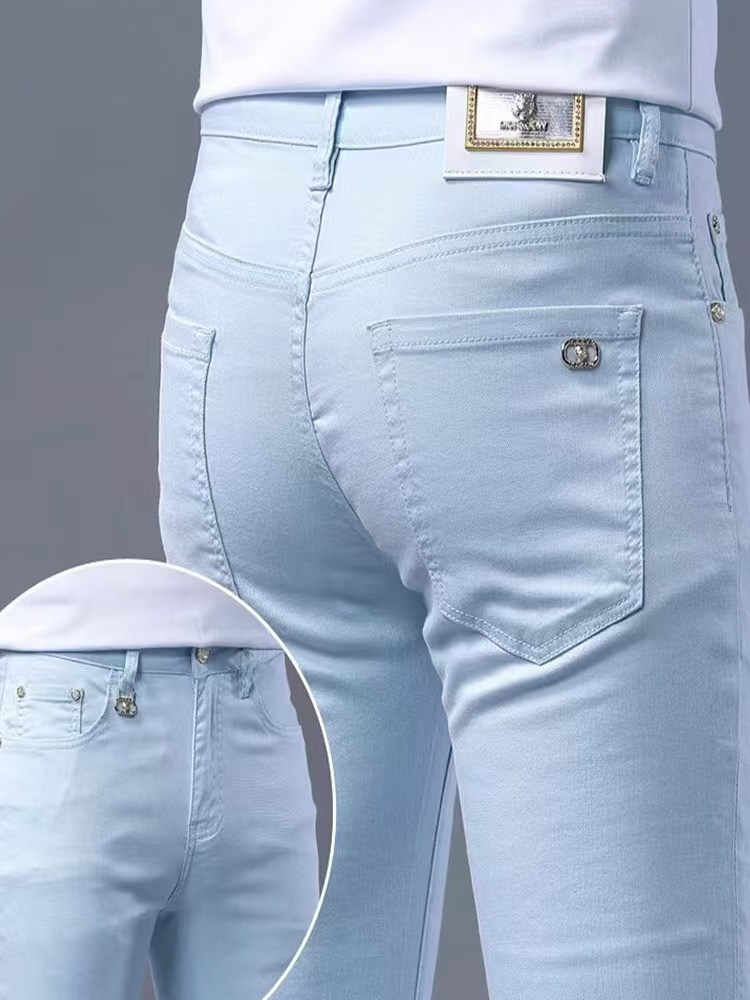 유럽 고급 트렌디 브랜드 블루 청바지 남성 봄 여름 신상 슬림핏 스몰 피트 스트레치 패션 캐주얼 남성 바지스토어 가기