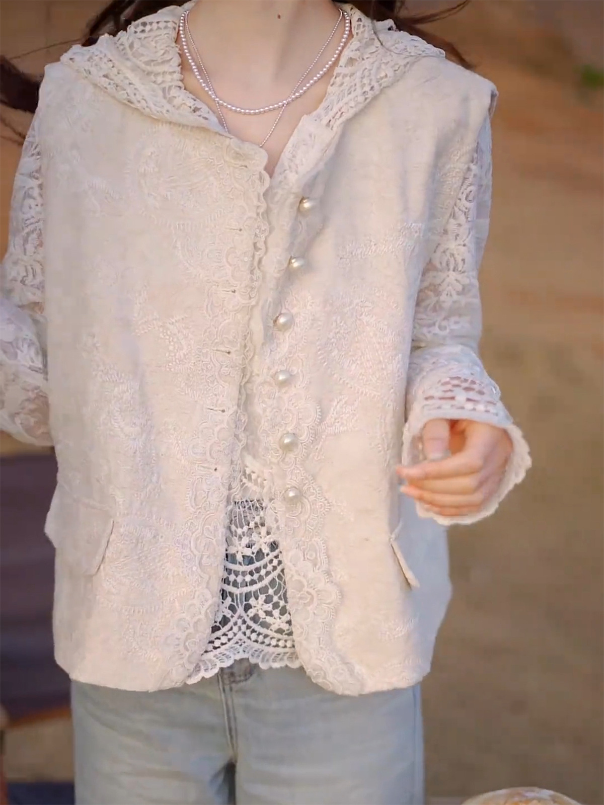 2025 여름 디자인 중공업 레이스 스플라이싱 새로운 중국 스타일 민족 스타일 조끼 여성 패션 기질 조끼 재킷