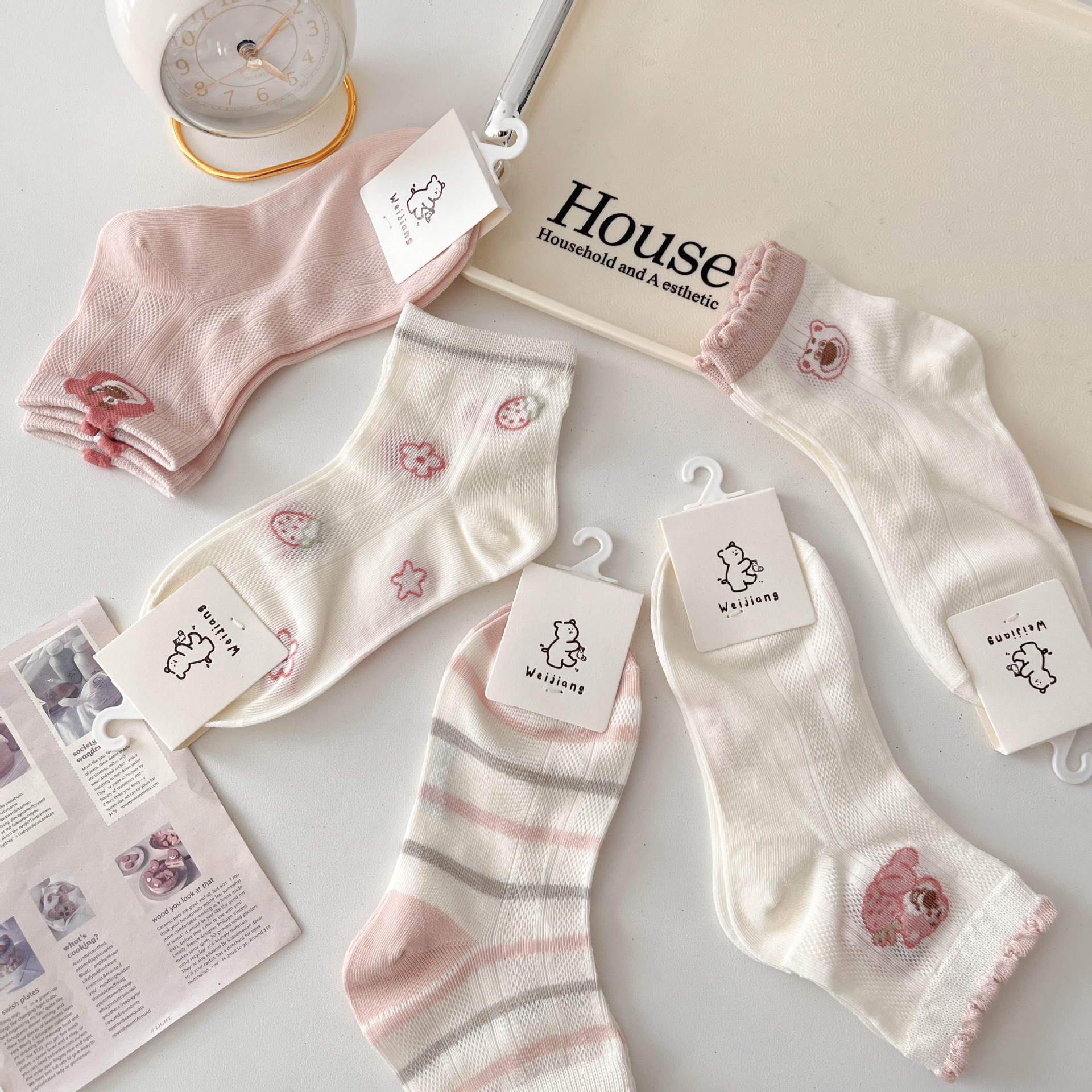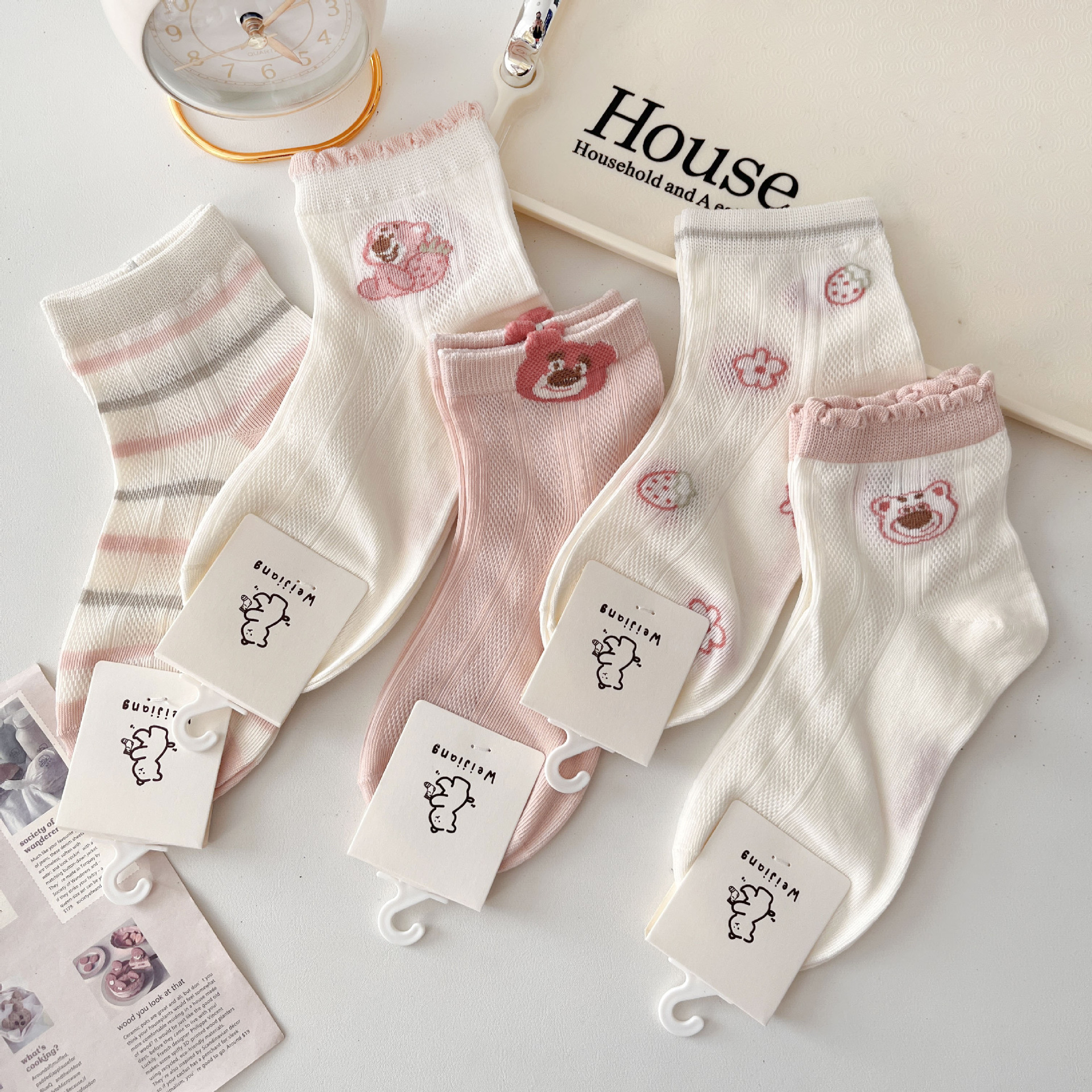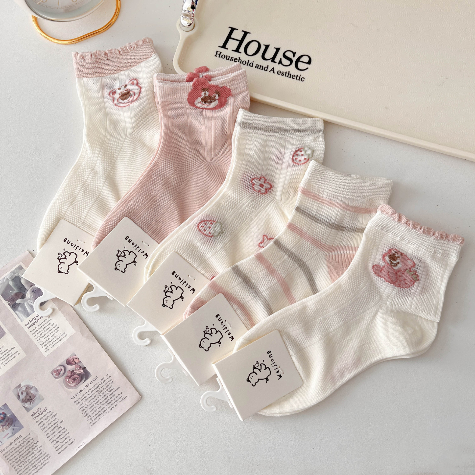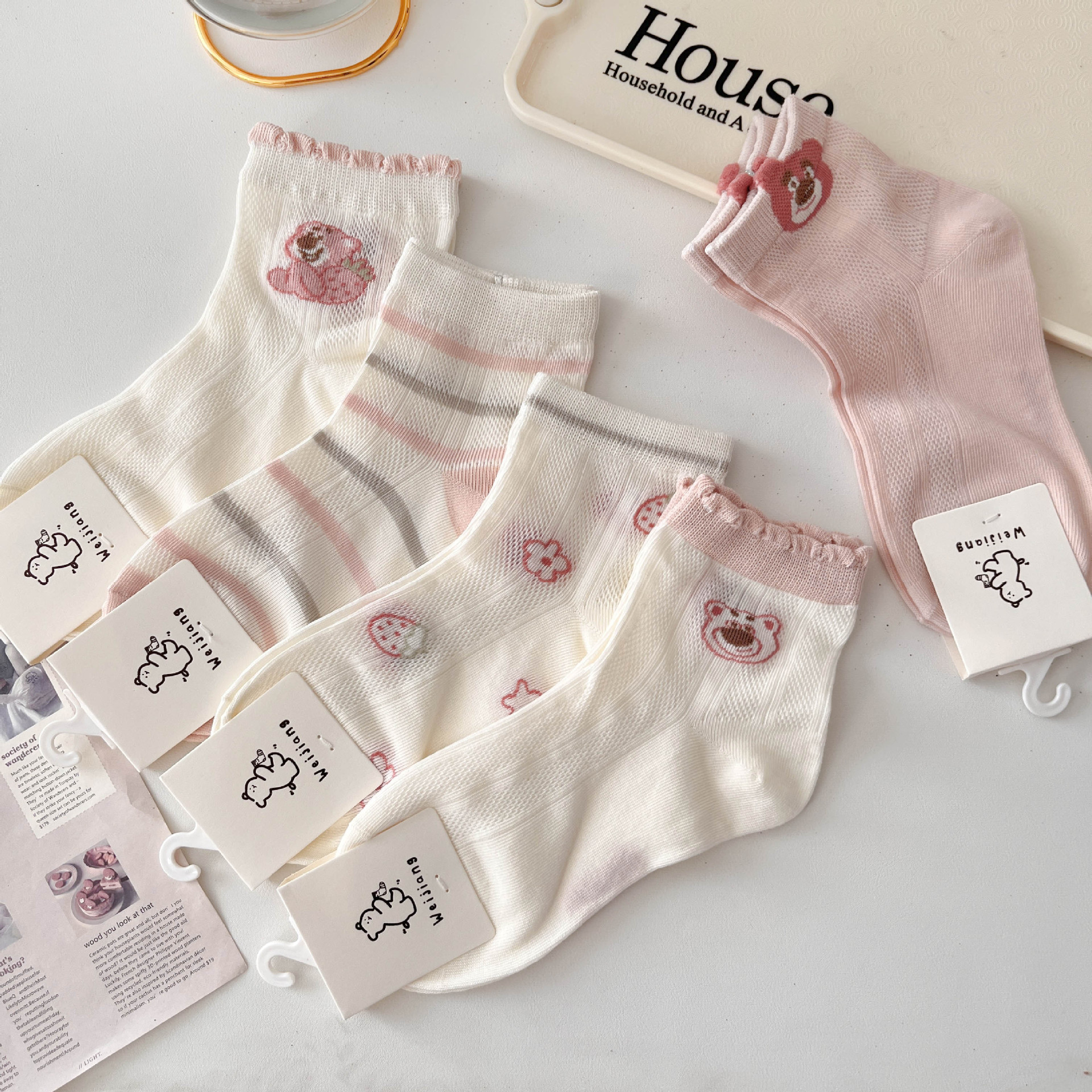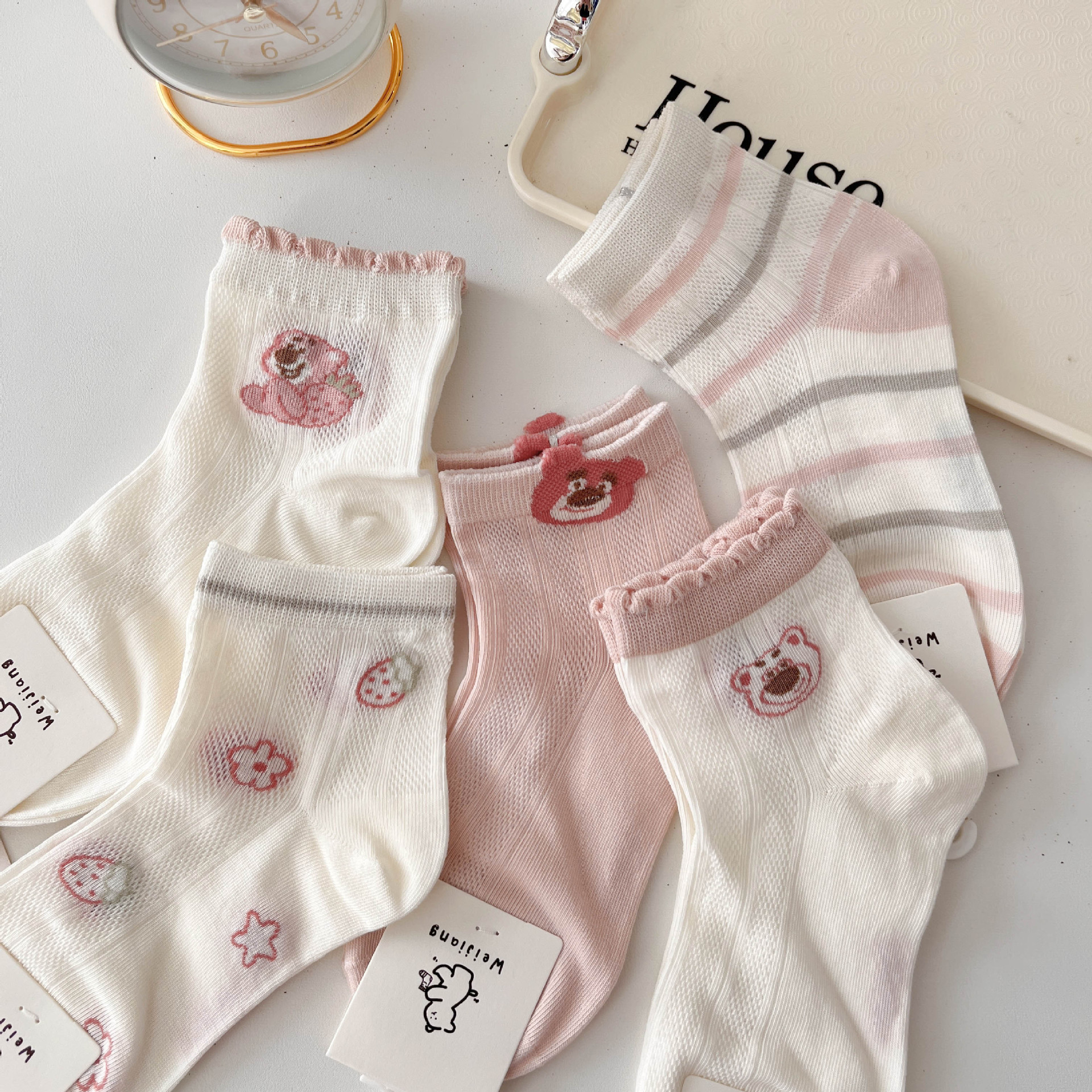 어린이 양말 핑크 봄 여름 얇은 메쉬 통기성 만화 레이스 소녀 아기 면화 양말스토어 가기