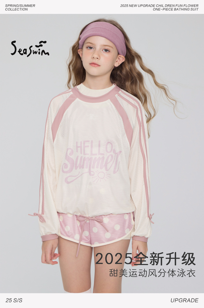 아동 수영복 여아 2025 새로운 스타일 스플릿 3 피스 수영복 중년 이상 어린이 및 중학생 속건성 보수적 수영복