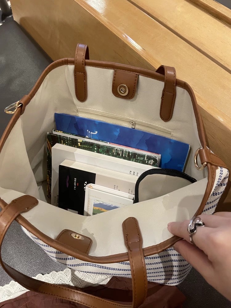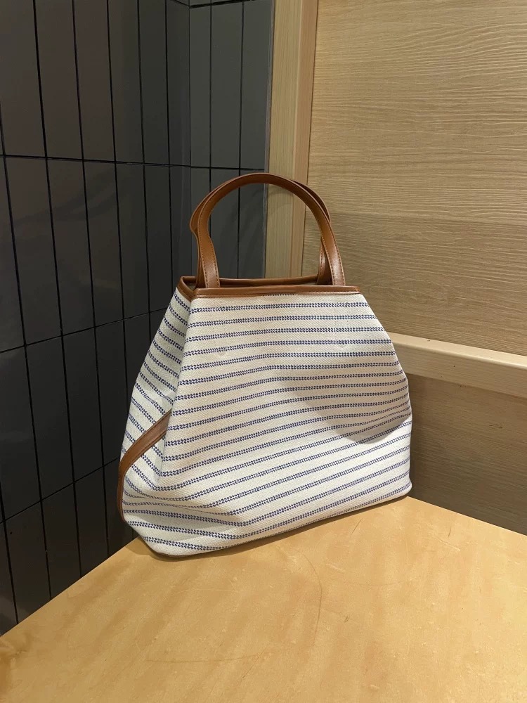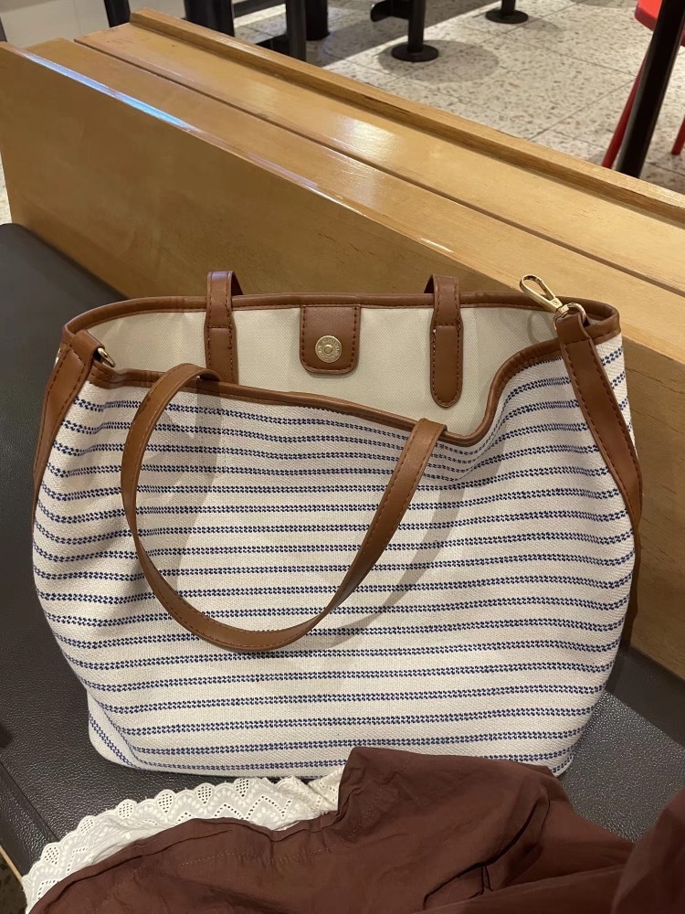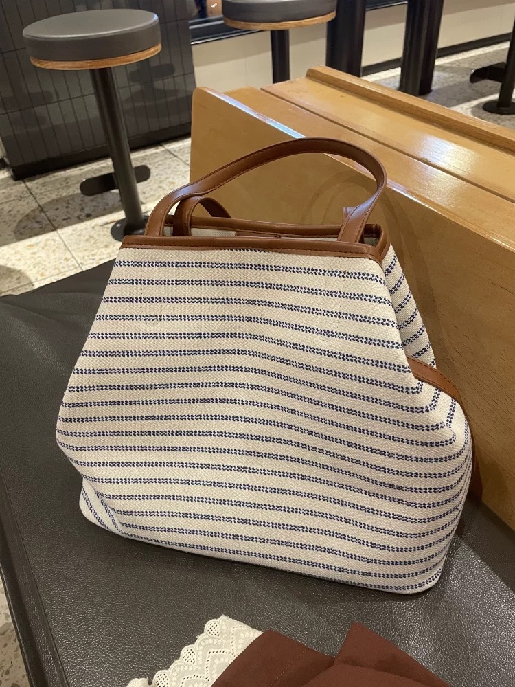 2026년 신상 한국 스타일 니치 브랜드 대용량 스트라이프 토트백 고급스럽고 편안한 패셔너블한 통근용 다용도 캔버스백스토어 가기