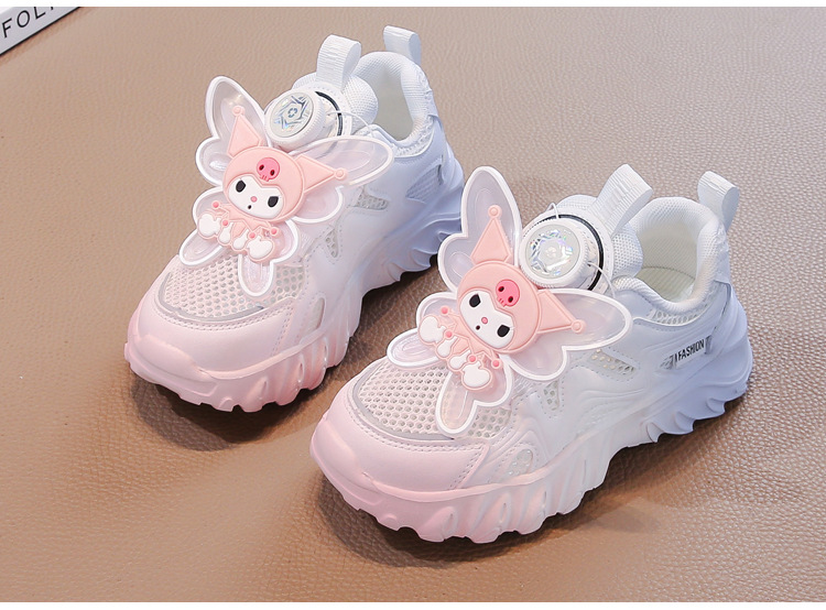 쿠로미 여아 신발, 운동화, 메쉬 통기성 버튼 신발, 중대형 아동 그라데이션 컬러 운동화, 다용도 학생 신발