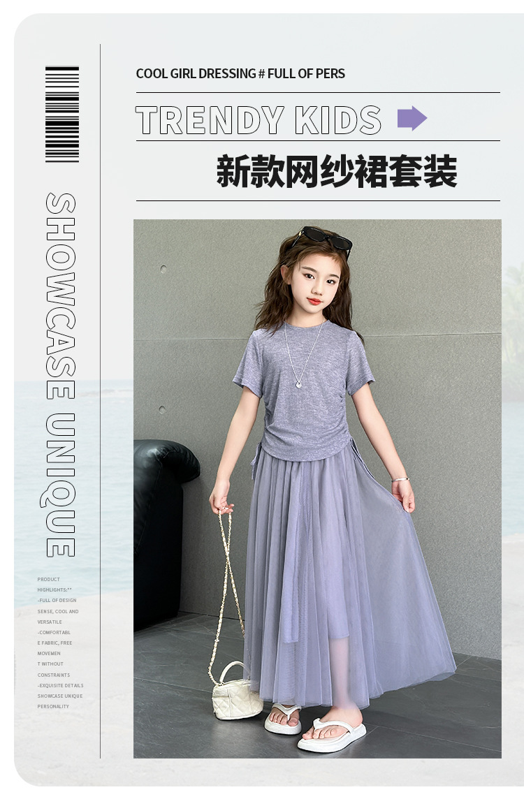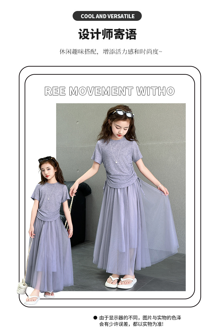 소녀 거즈 스커트 세트 2025 여름 새로운 큰 어린이 한국 스타일 유행 drawstring 짧은 소매 스커트 긴 스커트 투피스 패션스토어 가기