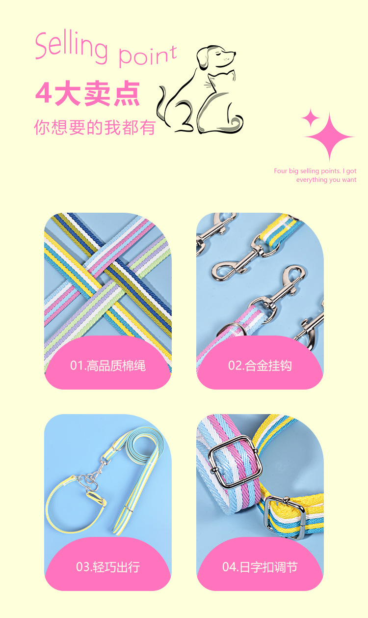 애완 동물 캔버스 견인 로프 훈련 개 로프 확장 및 강화 골든 리트리버 래브라도 범용 중형 개 견인 로프