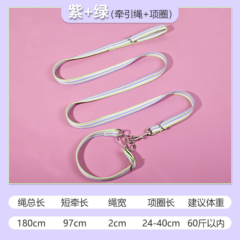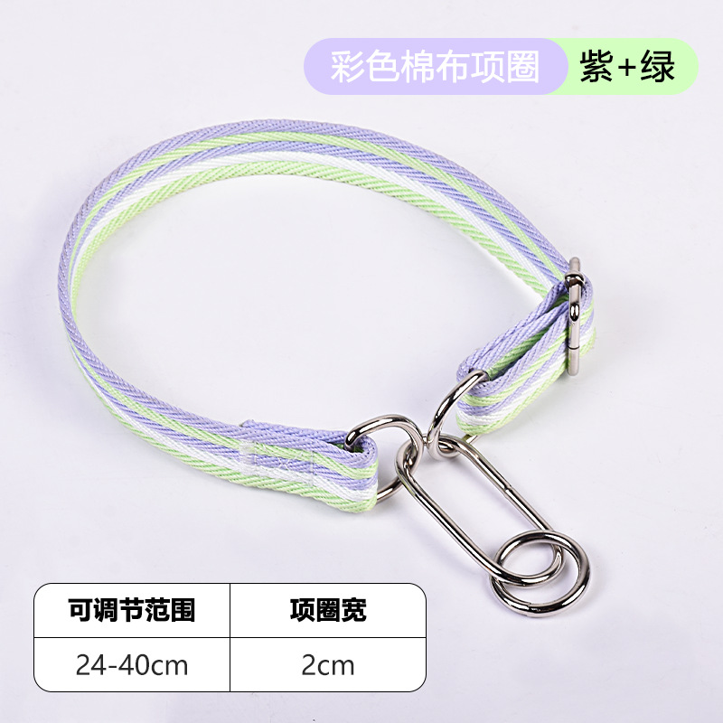 • 줄무늬 면줄 + 칼라/세트 [보라색 + 녹색]