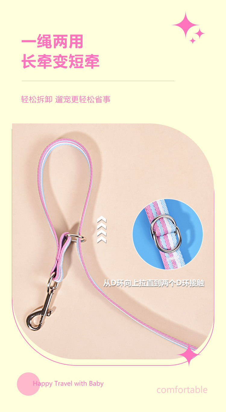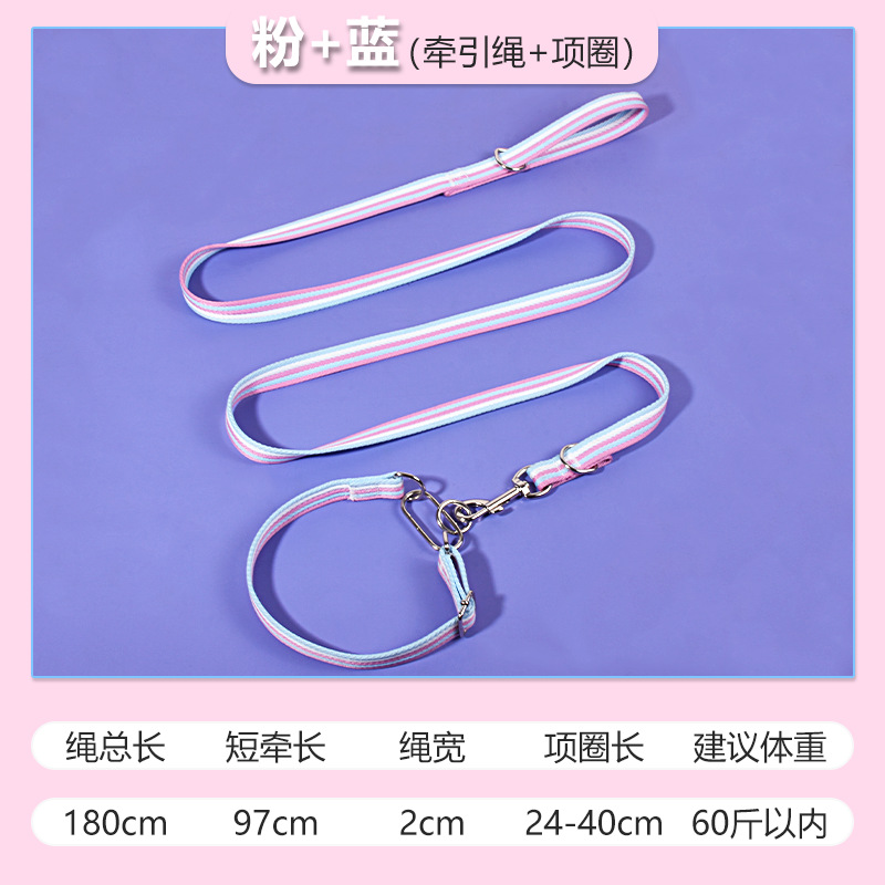 • 줄무늬 면로프+칼라/세트[핑크+블루]