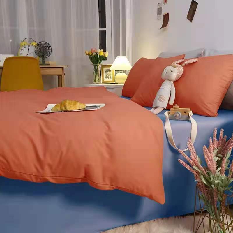B&B 4종세트, 신형 심플 피부친화적인 워싱면 컬러 3종세트 이불커버 시트 학생기숙사 침구스토어 가기