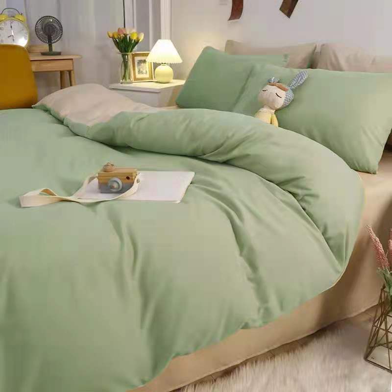 B&B 4종세트, 신형 심플 피부친화적인 워싱면 컬러 3종세트 이불커버 시트 학생기숙사 침구