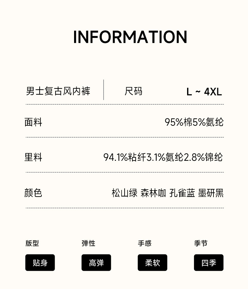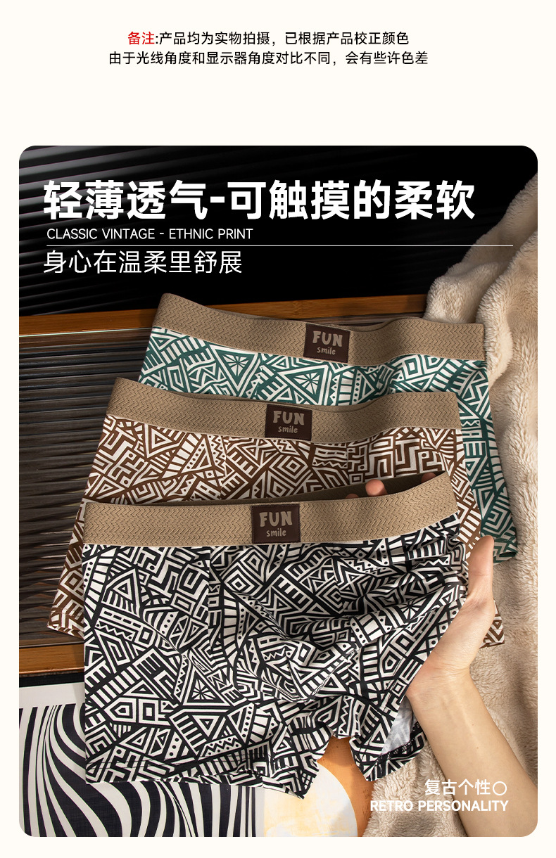 [맞춤형 가공] 남성용 순면 속옷 반바지 복고풍 단순 고탄성 편안한 허리 10A 항균 내부 레이어