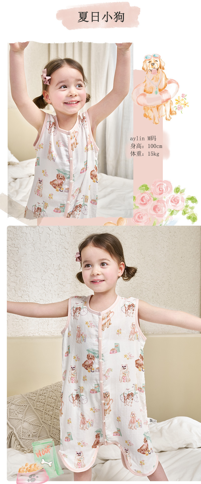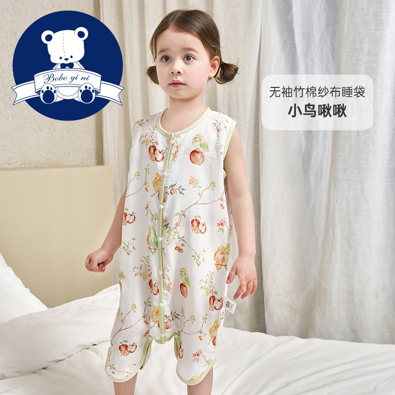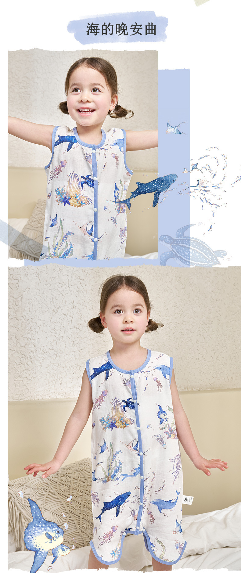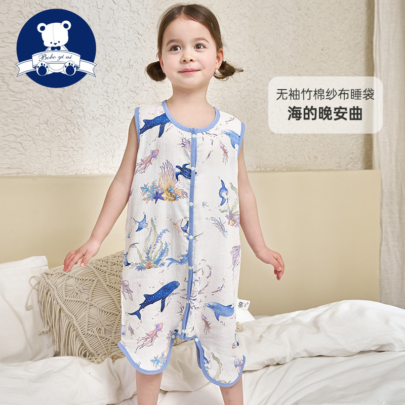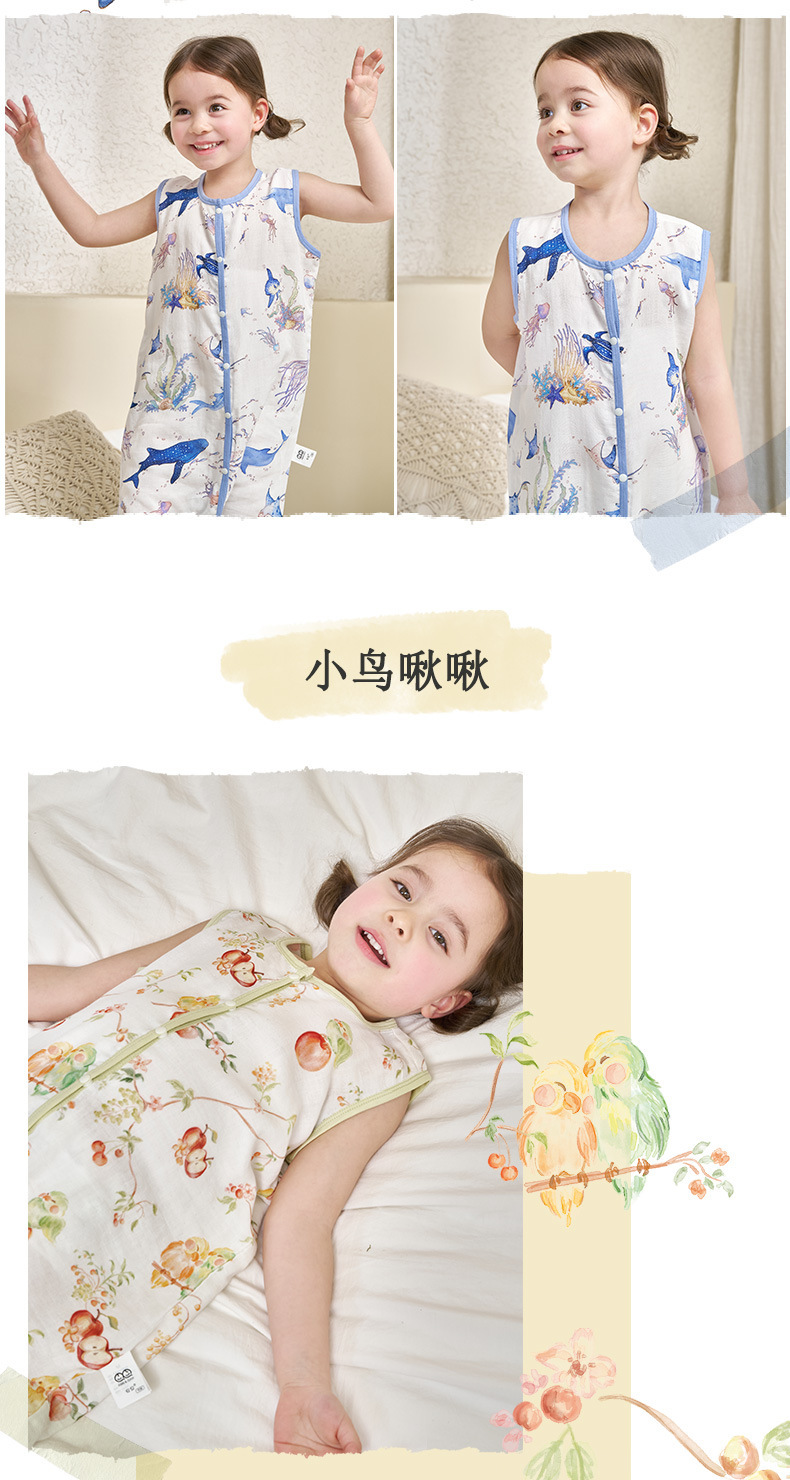 새로운 봄과 여름 어린이 잠자는 가방 소매 없는 대나무 코튼 거즈 잠자는 가방 홈 옷 다리 잠자는 가방 편안한 통풍스토어 가기