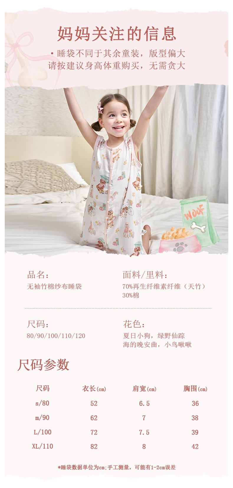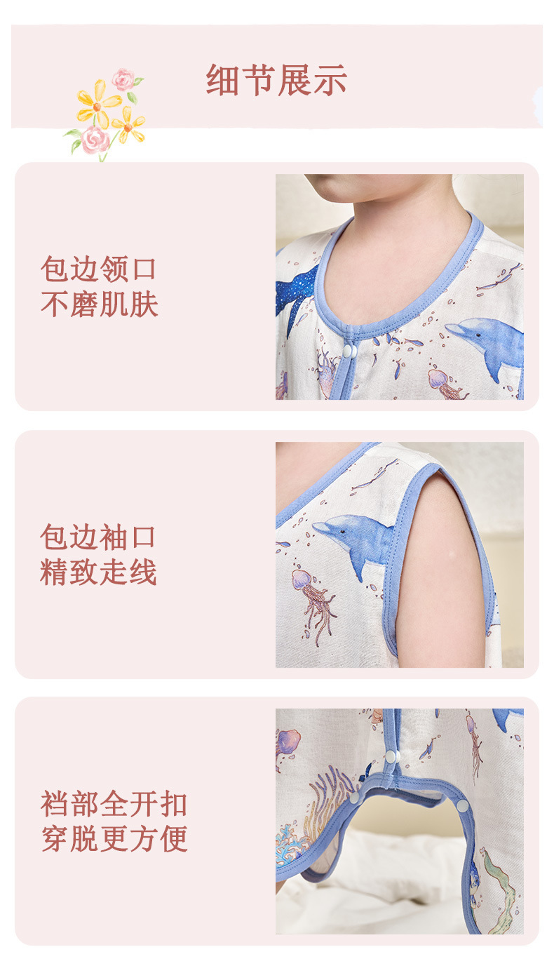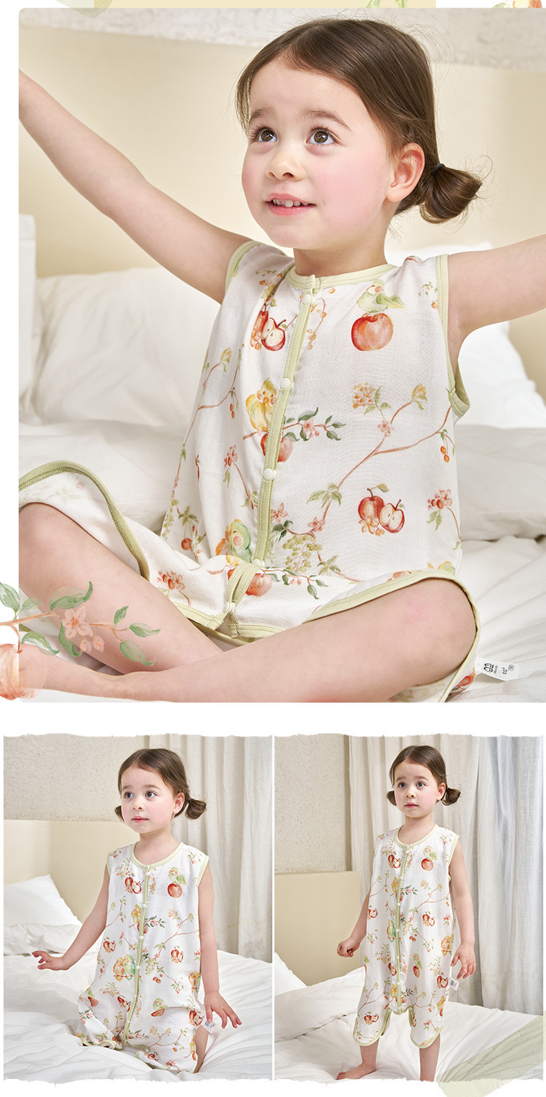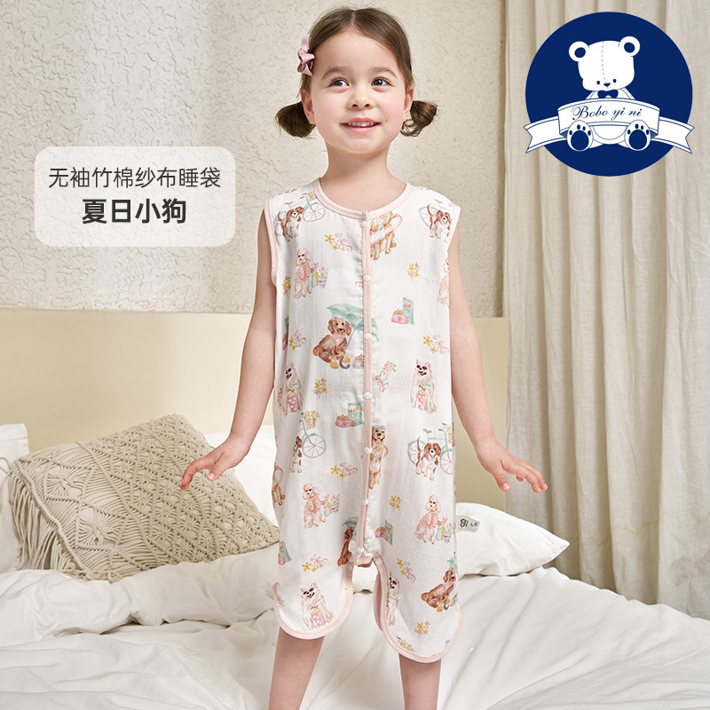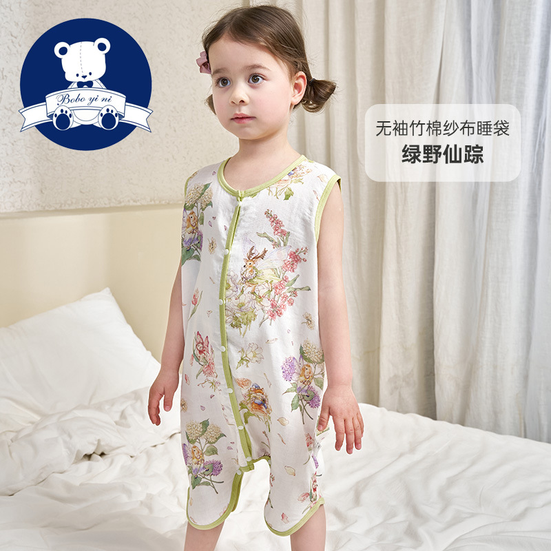 새로운 봄과 여름 어린이 잠자는 가방 소매 없는 대나무 코튼 거즈 잠자는 가방 홈 옷 다리 잠자는 가방 편안한 통풍스토어 가기