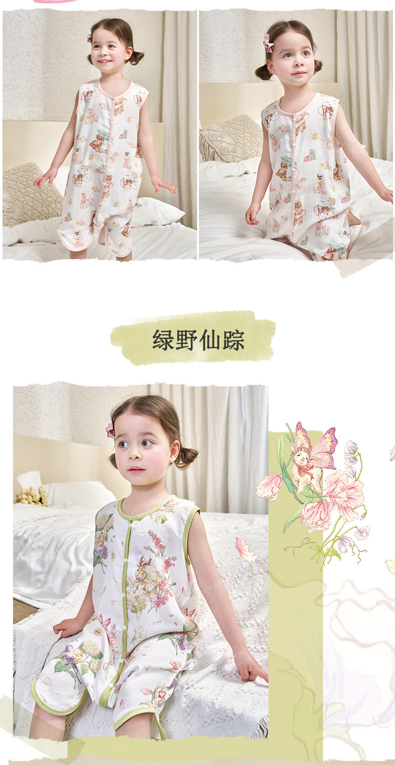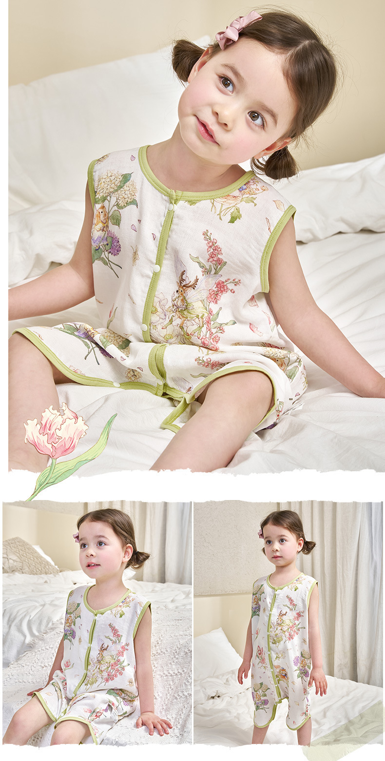 새로운 봄과 여름 어린이 잠자는 가방 소매 없는 대나무 코튼 거즈 잠자는 가방 홈 옷 다리 잠자는 가방 편안한 통풍