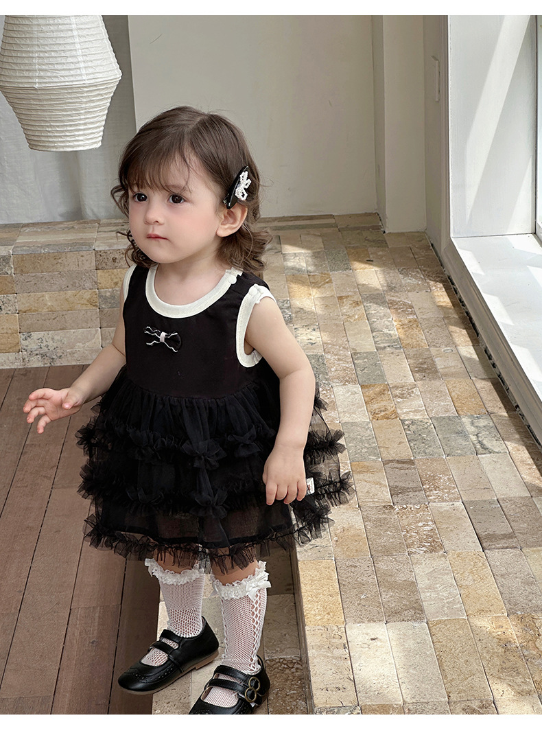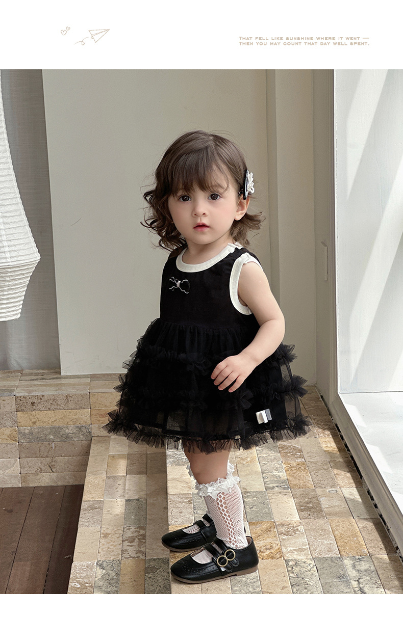 젊은 Wo 여자 원피스 2025 년 여름 새로운 스타일 한국 어린이 치마 아기 백일 메쉬 공주 치마스토어 가기