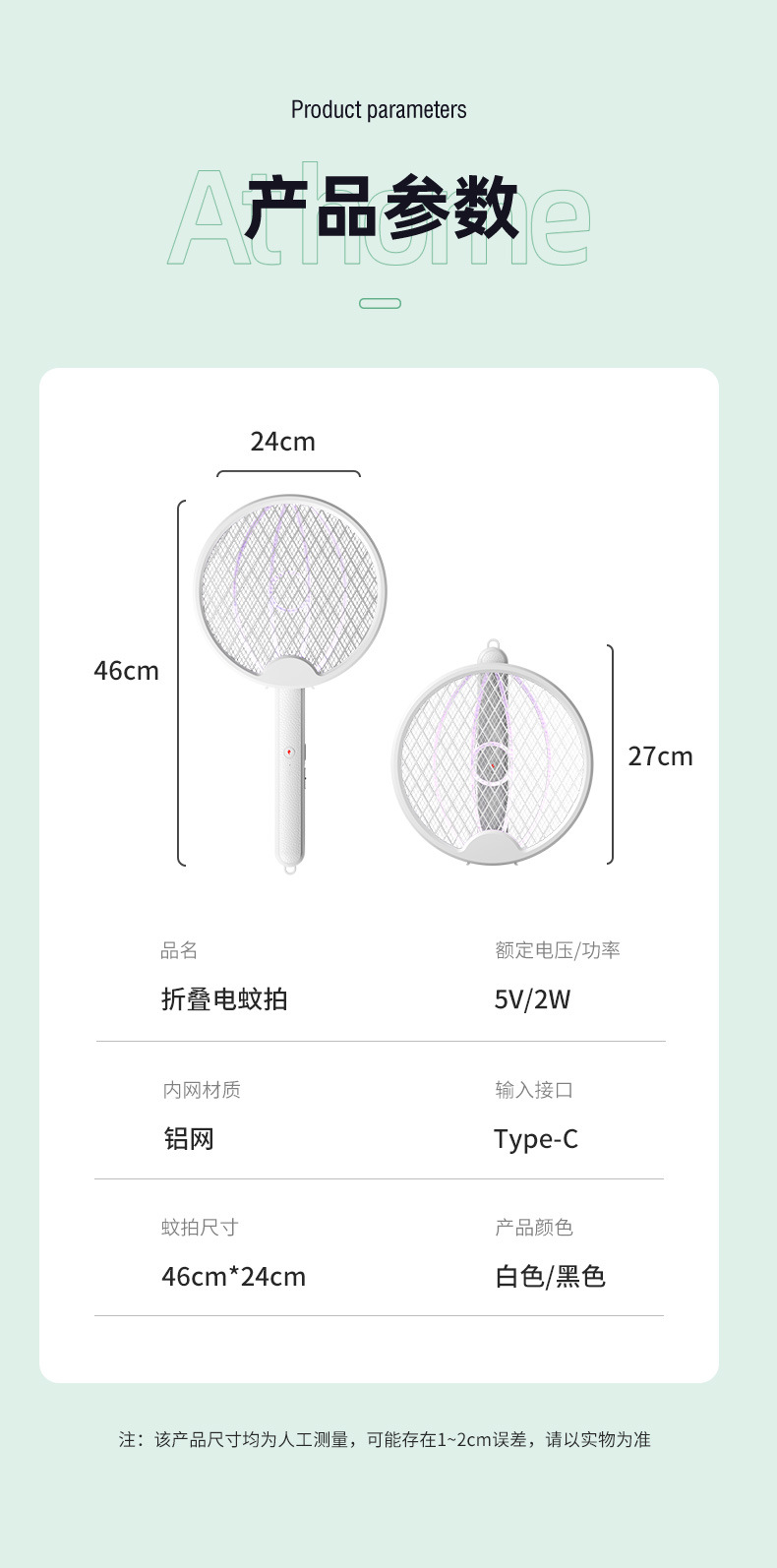 접는 전기 모기 swatter 전기 충격 모기 킬러 USB 모기 킬러 충전식 가정용 2 대 1 모기 킬러