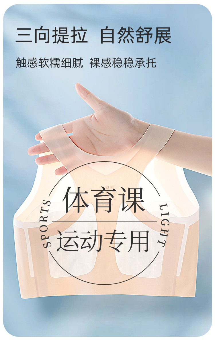 발달기 심리스 여아 속옷, 중학생, 고등학생 스포츠 노와이어 조끼, 노출방지 발달기 브라