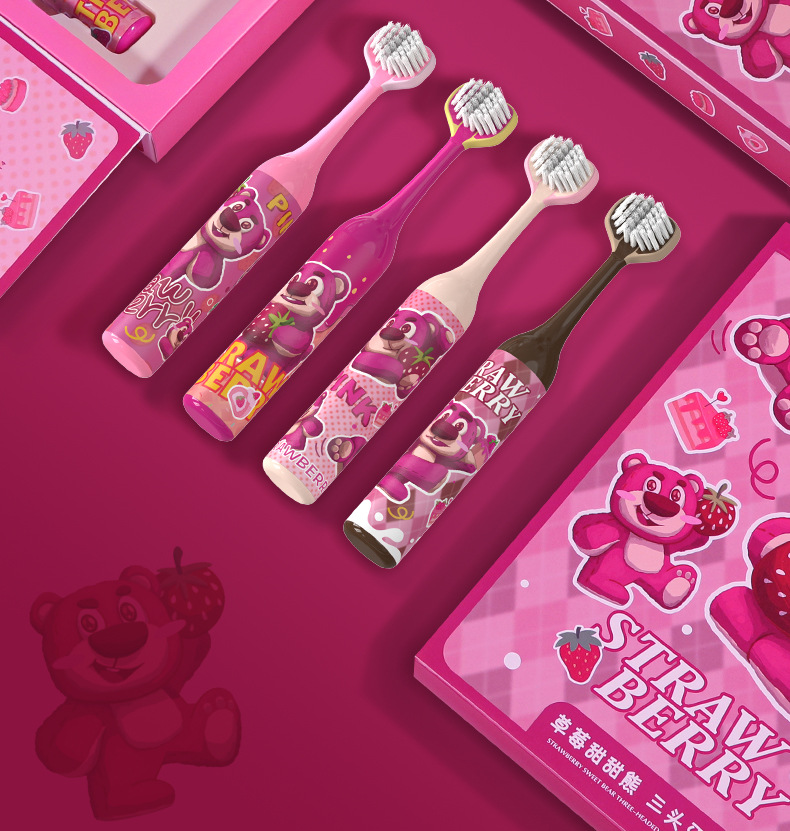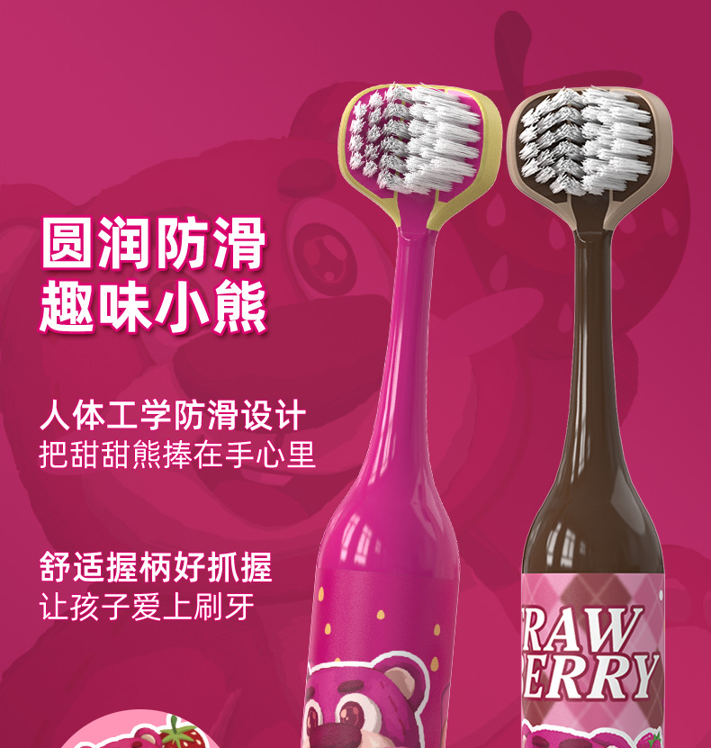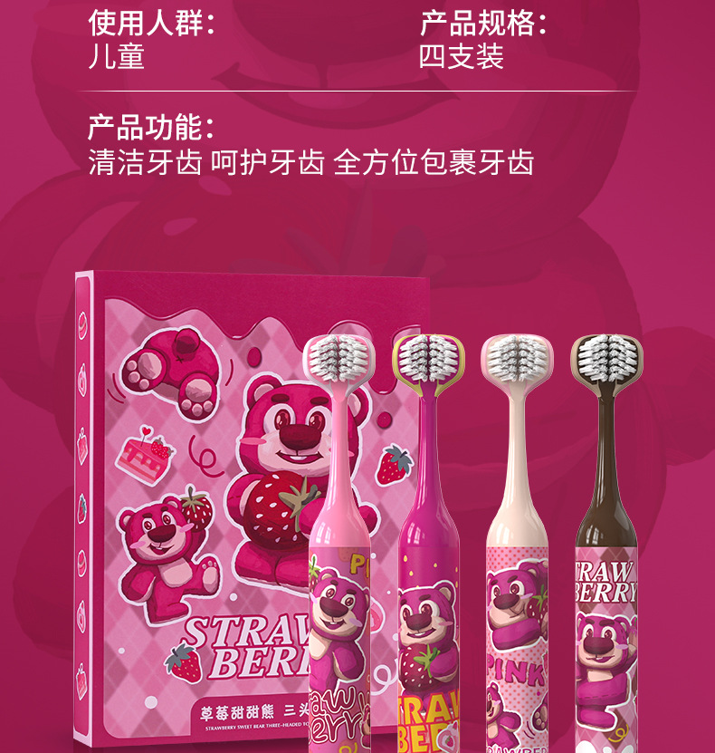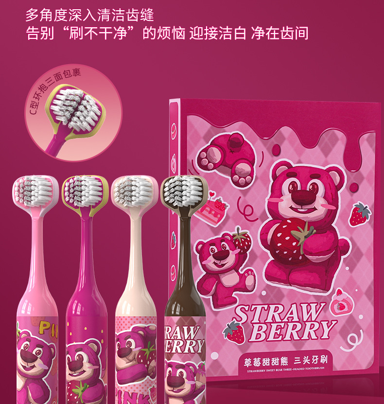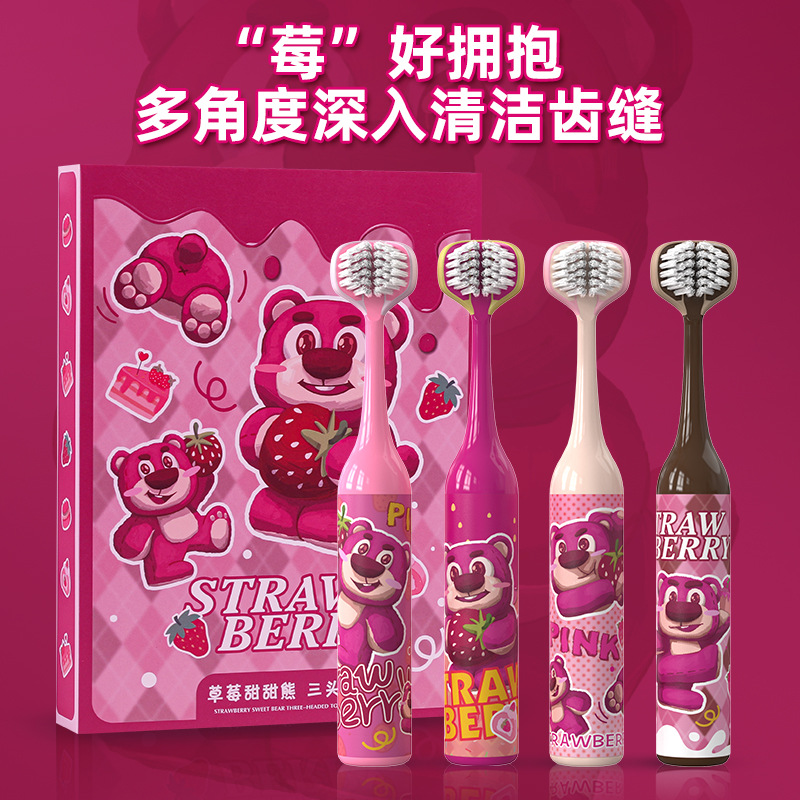 선물용 박스에 4개입 체리베어 어린이 칫솔 삼면 C형 브러시 헤드 부드러운 모 작은 헤드 가정용 어린이 연습용 칫솔
