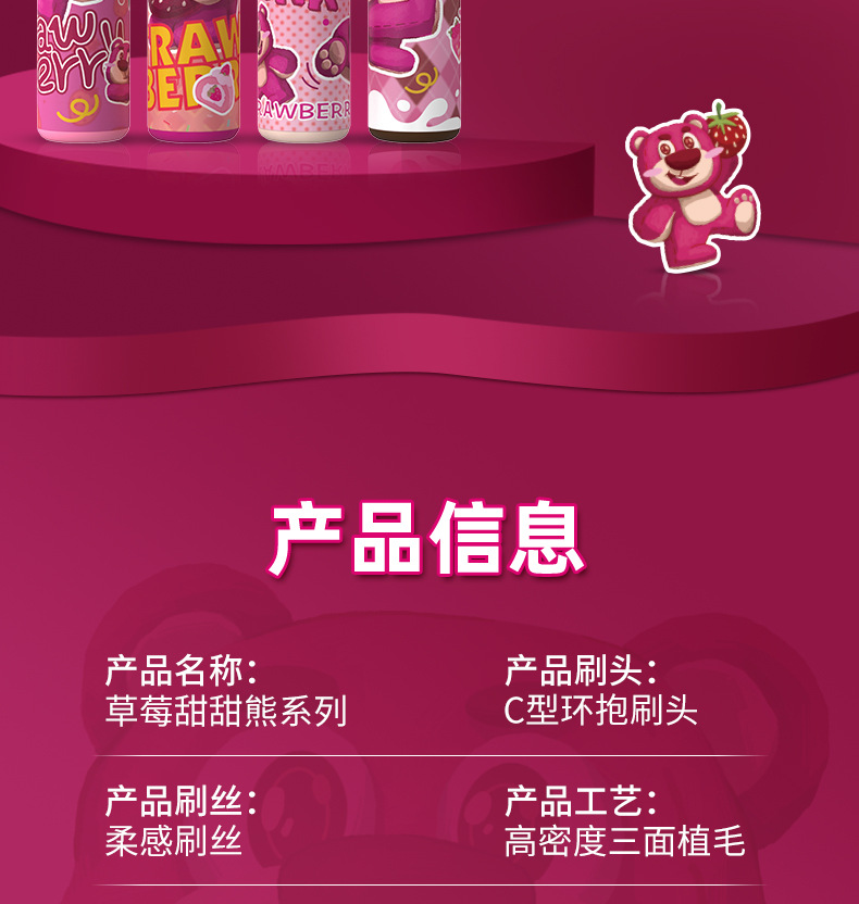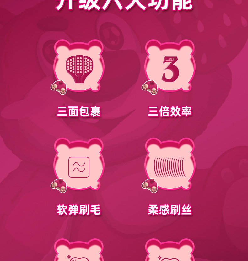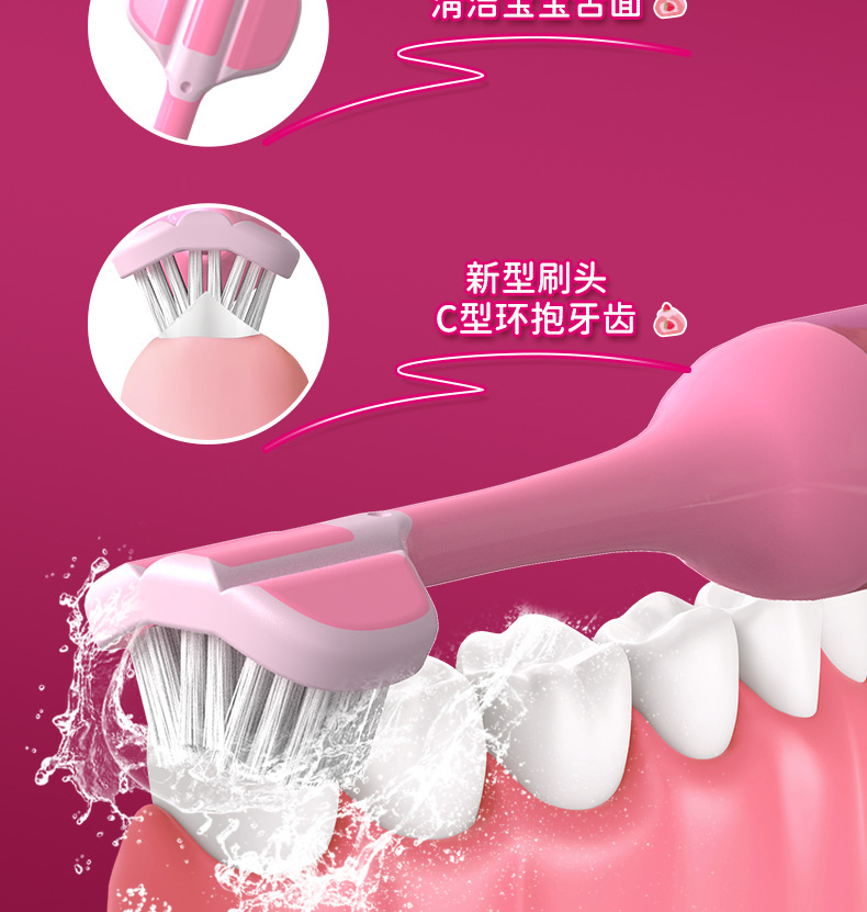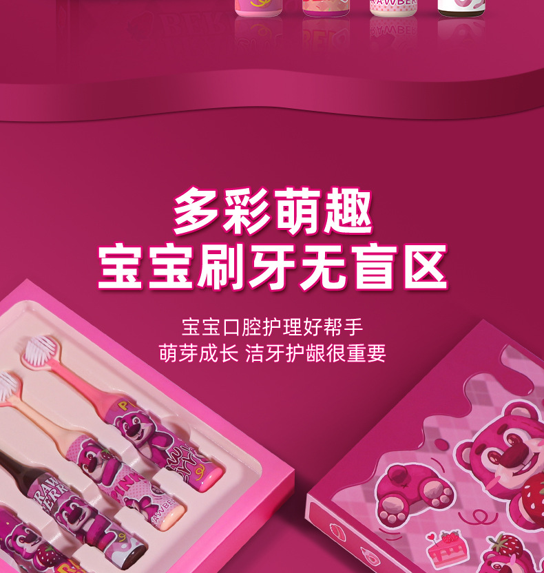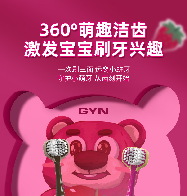 선물용 박스에 4개입 체리베어 어린이 칫솔 삼면 C형 브러시 헤드 부드러운 모 작은 헤드 가정용 어린이 연습용 칫솔