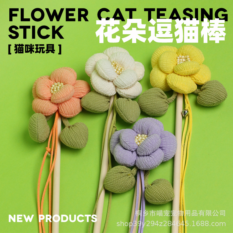 꽃 고양이 장난감 고양이 장난감 애완 동물 용품 공장 도매 스웨이드 로프 패브릭 벨 소리 긁힘 방지 및 물림 방지