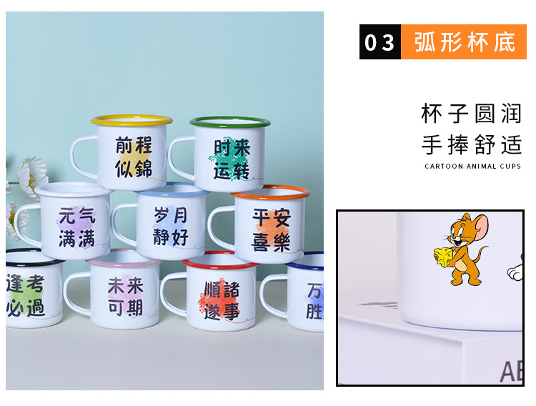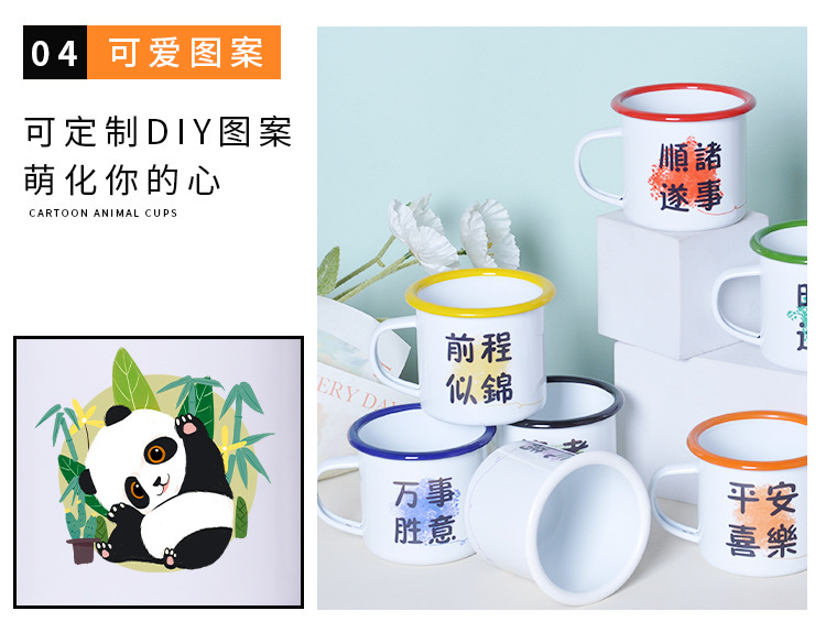 크리 에이 티브 두꺼운 에나멜 컵 로고 대용량 어린이 에나멜 워터 컵 철 차 항아리 인쇄 사용자 정의스토어 가기