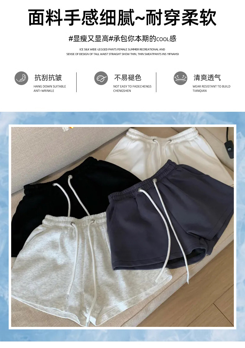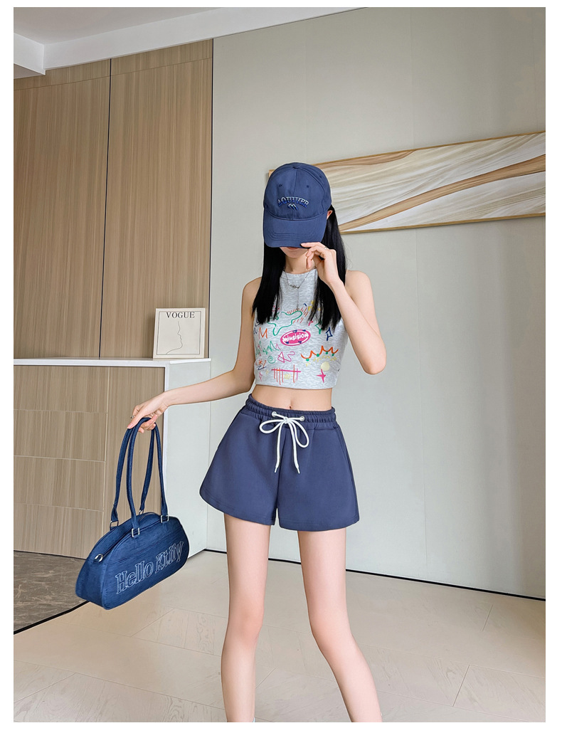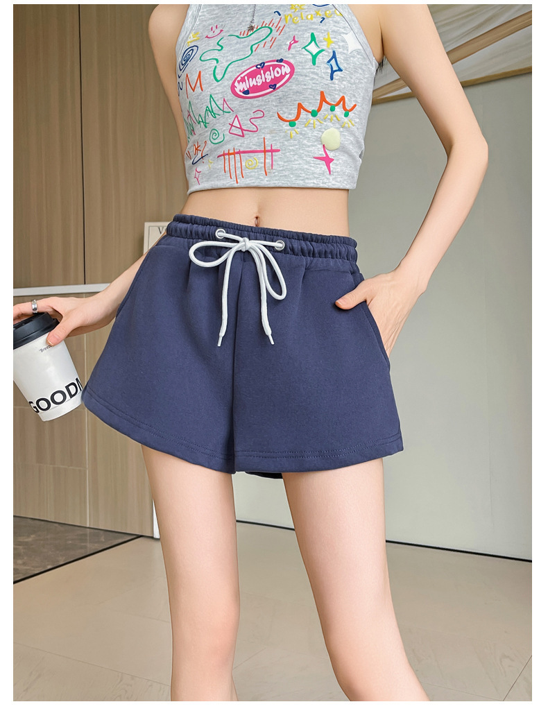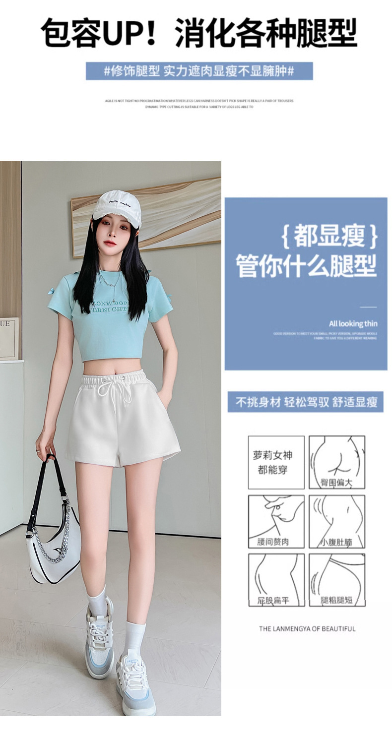 여자 봄 높은 허리 끈 캐주얼 스포츠 반바지 여름 새로운 미국 스타일 레트로 느슨한 넓은 다리 바지 뜨거운 바지