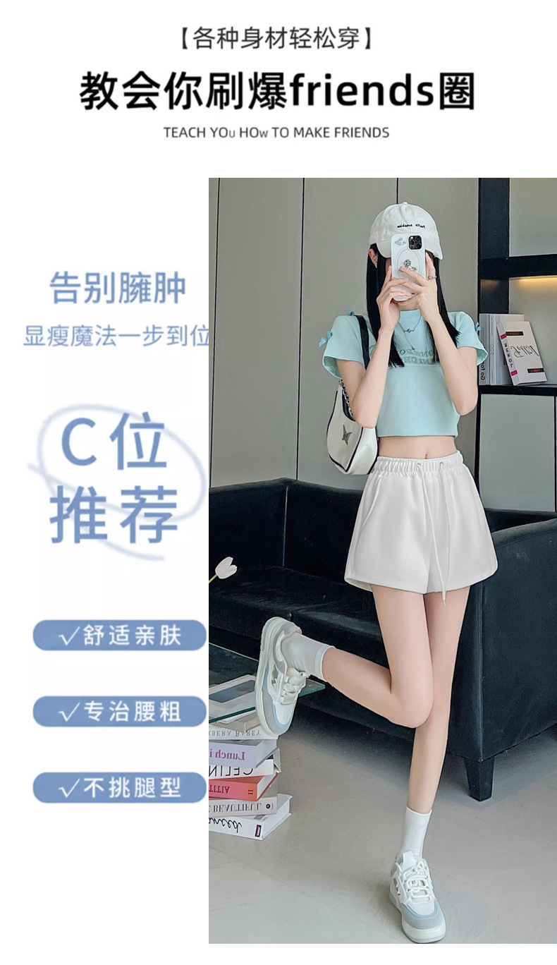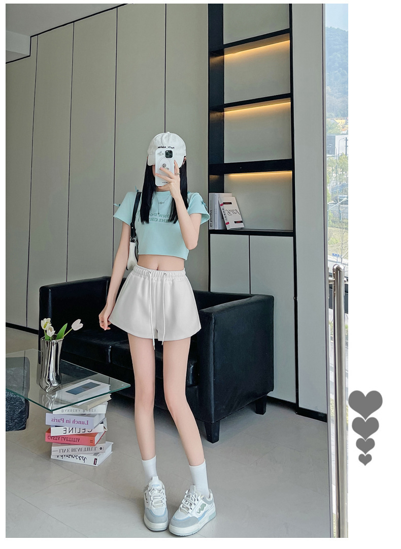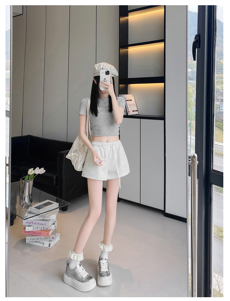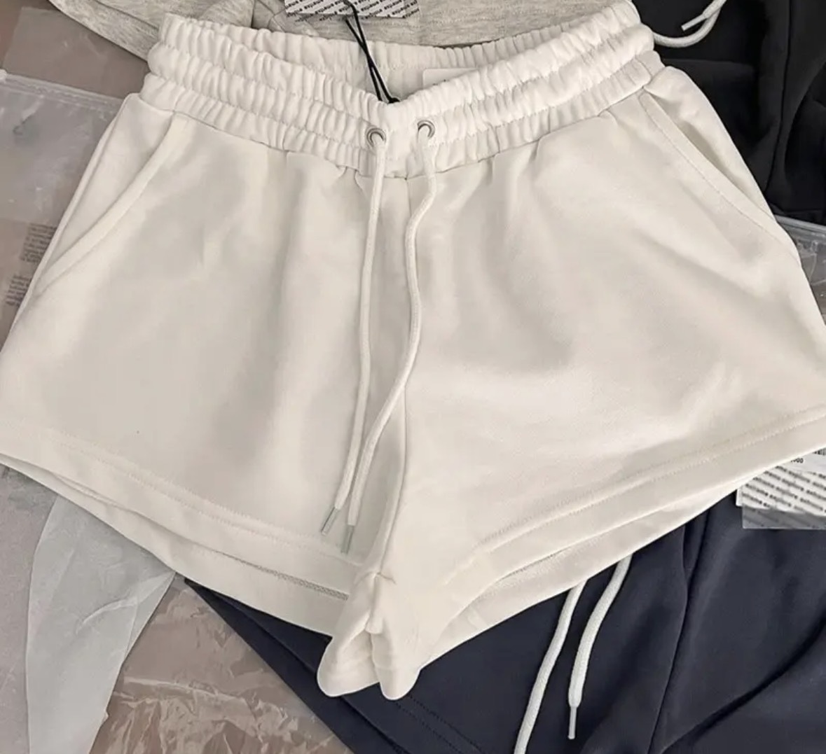 여자 봄 높은 허리 끈 캐주얼 스포츠 반바지 여름 새로운 미국 스타일 레트로 느슨한 넓은 다리 바지 뜨거운 바지