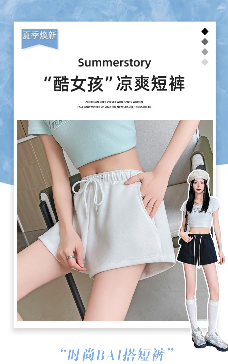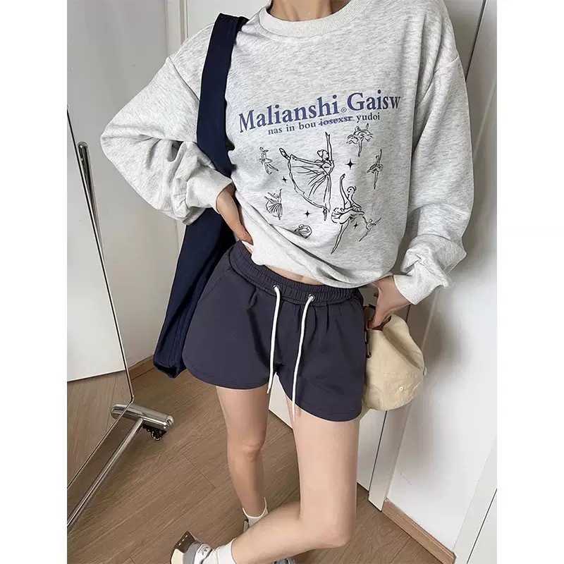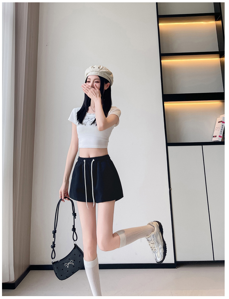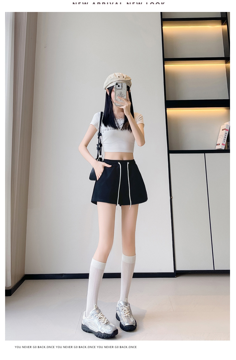 여자 봄 높은 허리 끈 캐주얼 스포츠 반바지 여름 새로운 미국 스타일 레트로 느슨한 넓은 다리 바지 뜨거운 바지스토어 가기