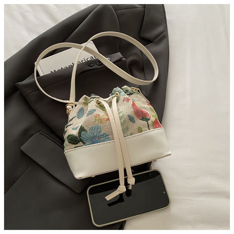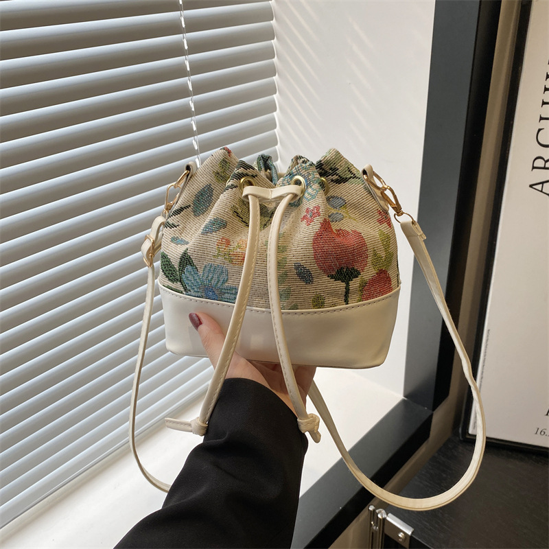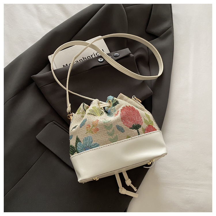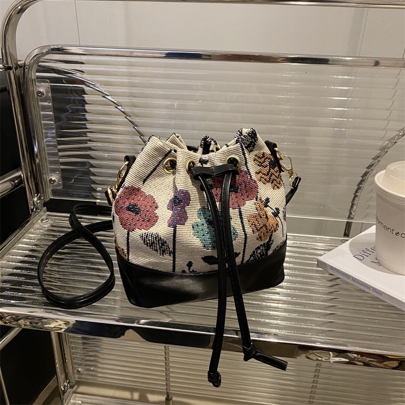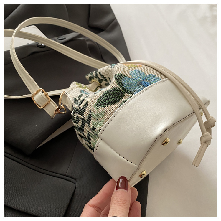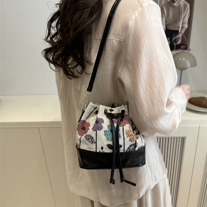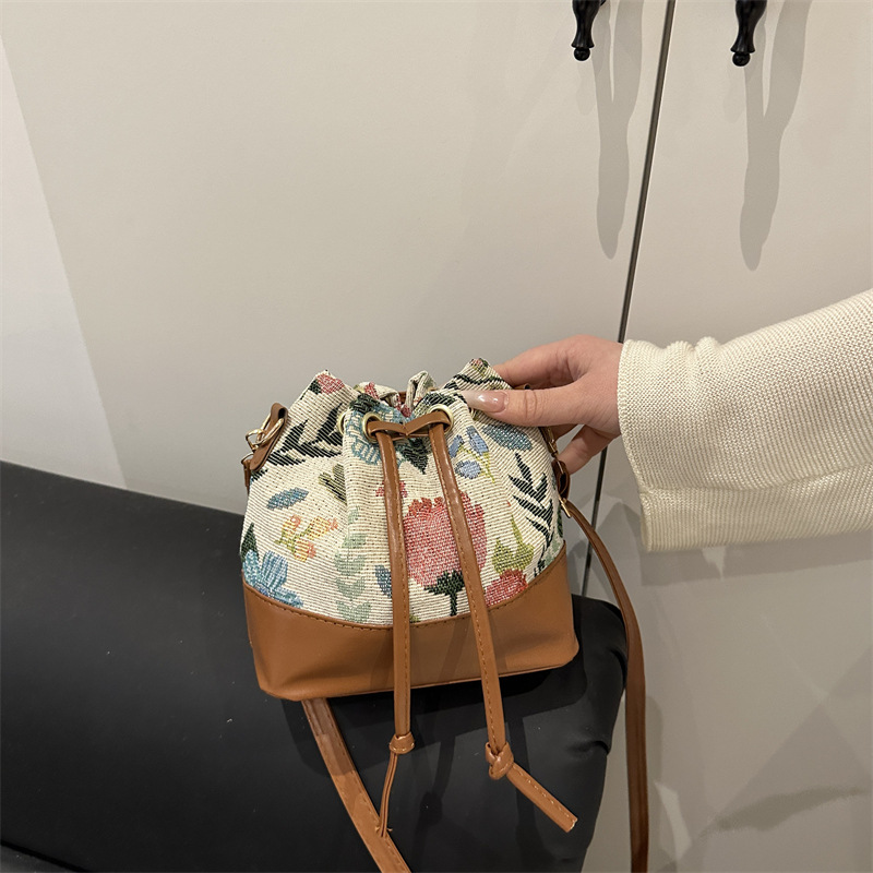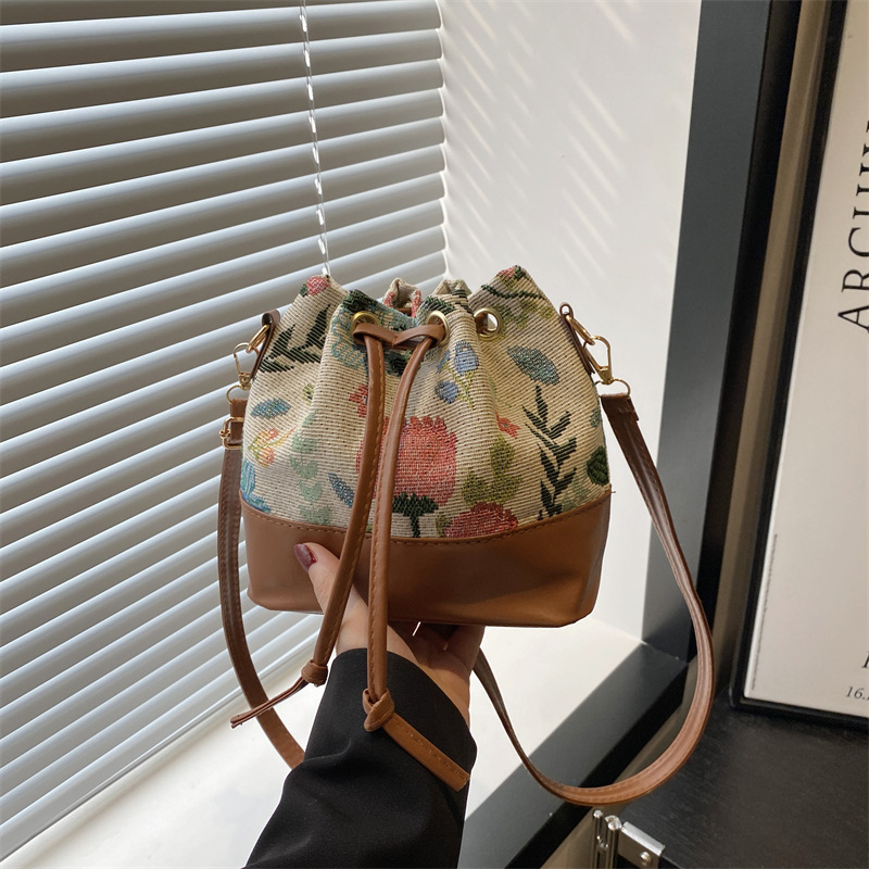 봄 새로운 패션 개성 버킷 가방 여성 캐주얼 꽃 인쇄 다목적 민족 스타일 대비 색상 메신저 가방스토어 가기