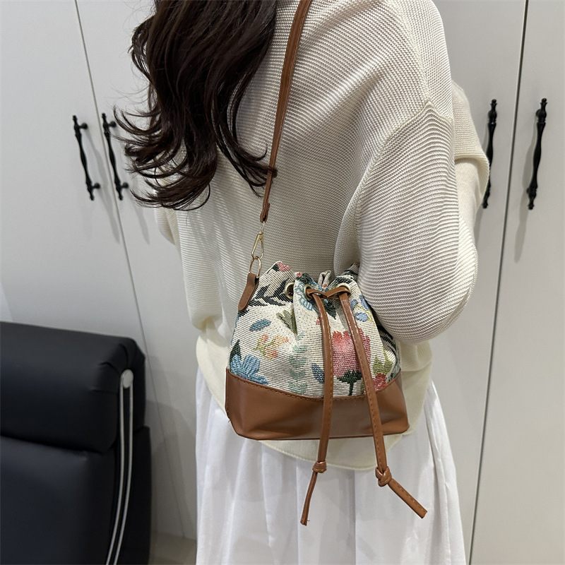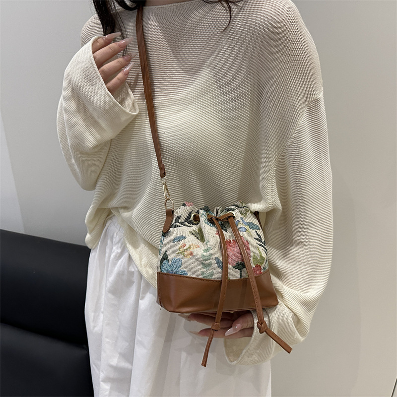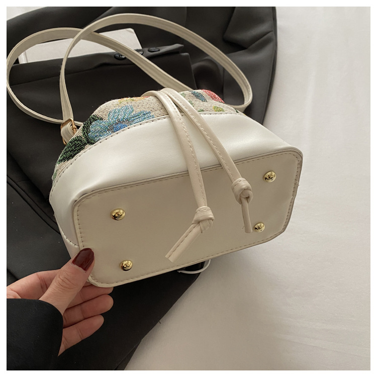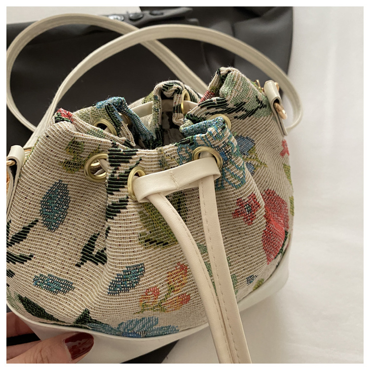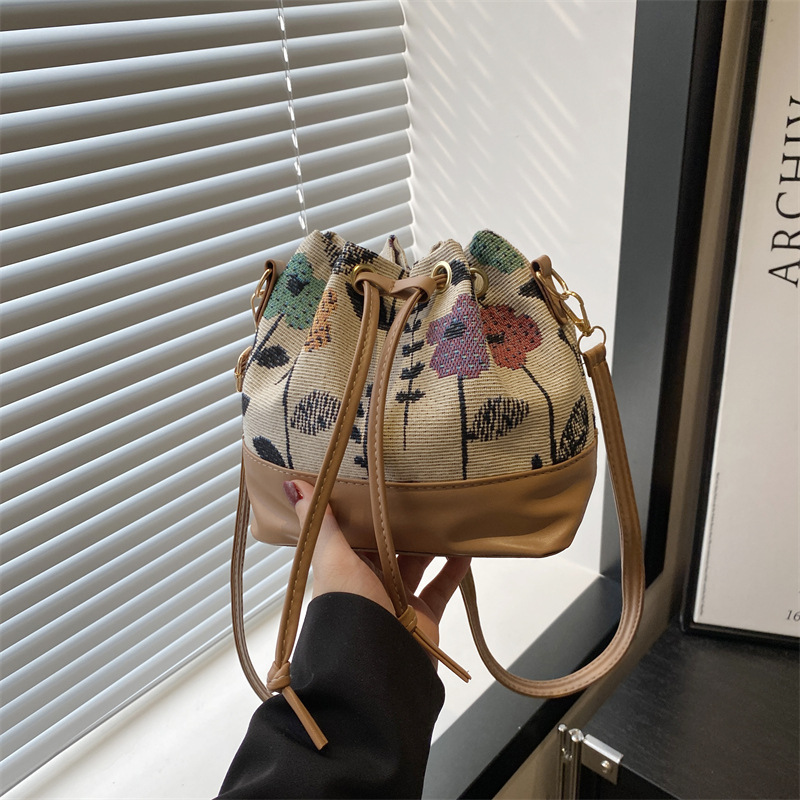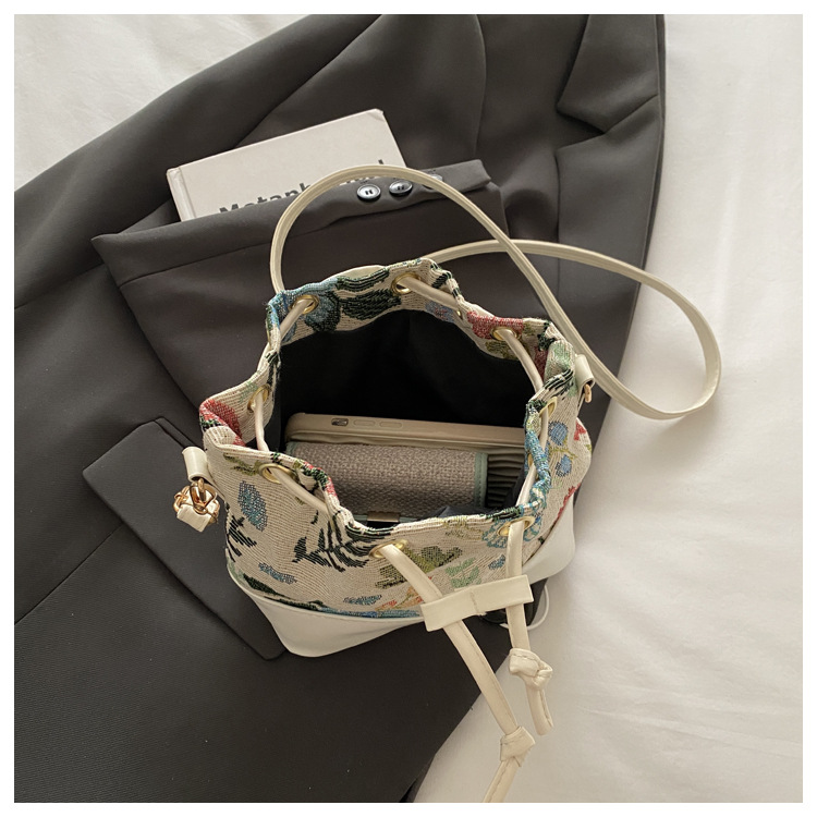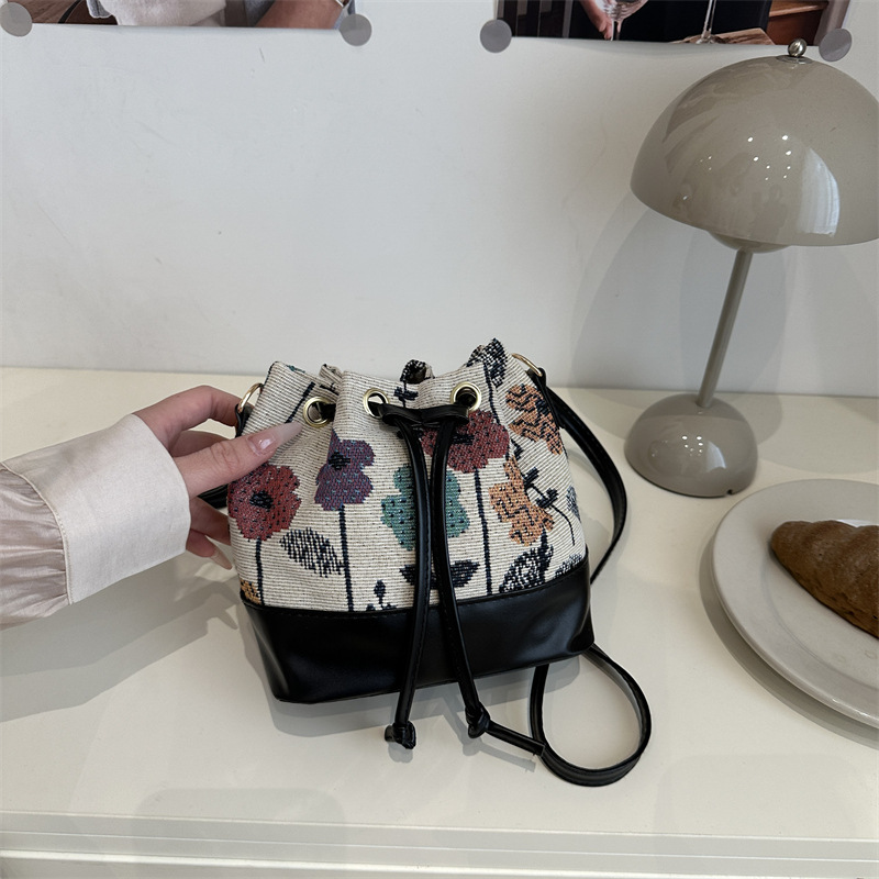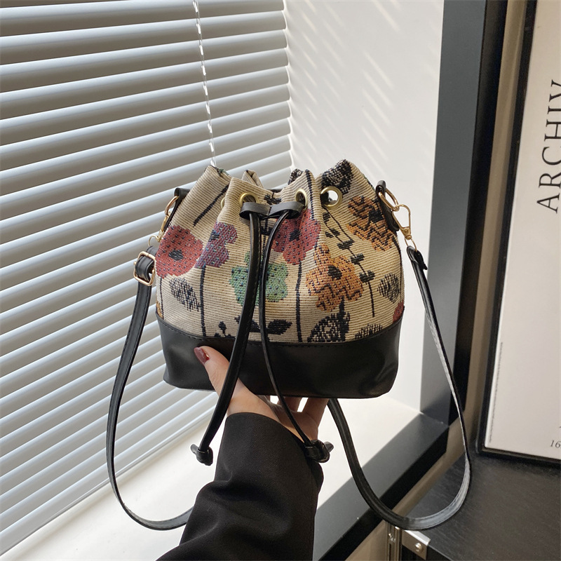 봄 새로운 패션 개성 버킷 가방 여성 캐주얼 꽃 인쇄 다목적 민족 스타일 대비 색상 메신저 가방스토어 가기