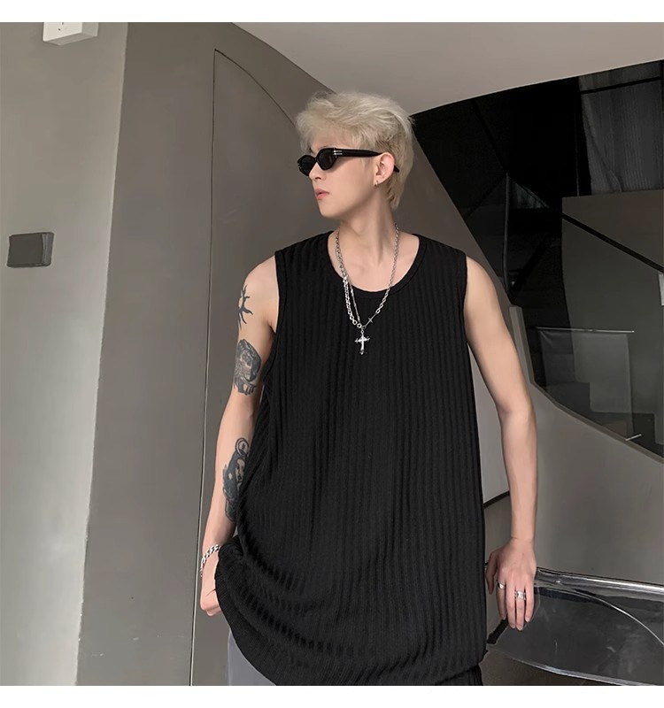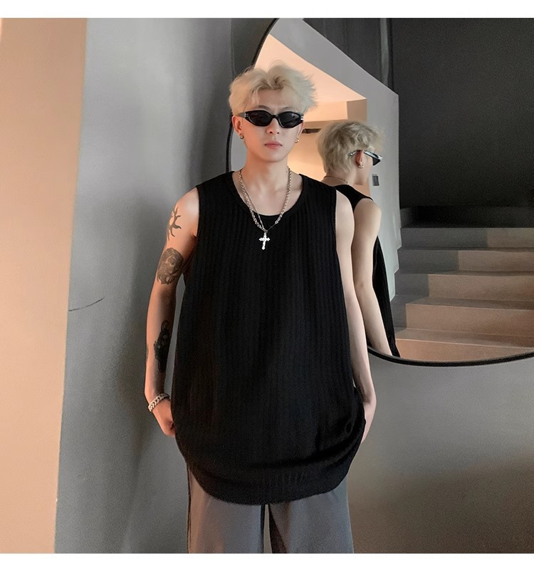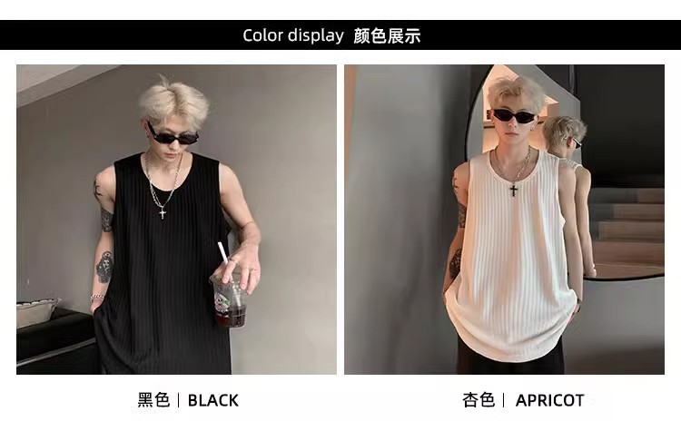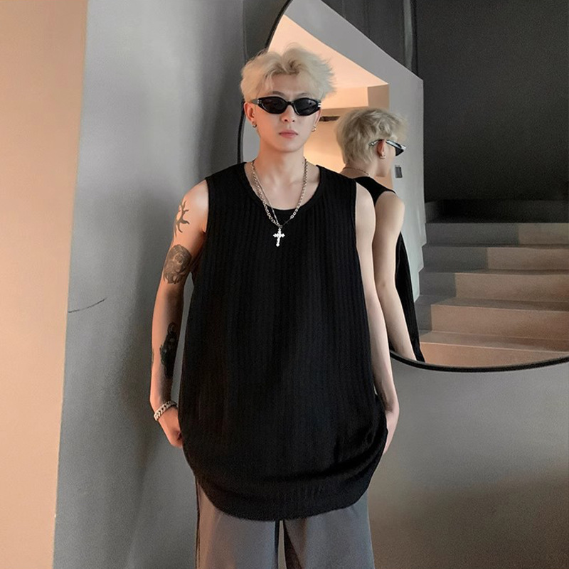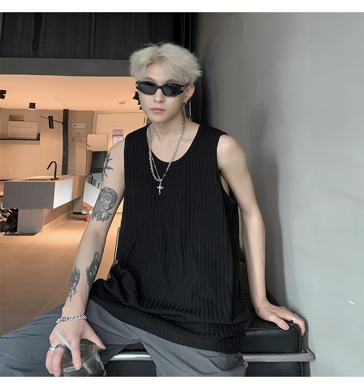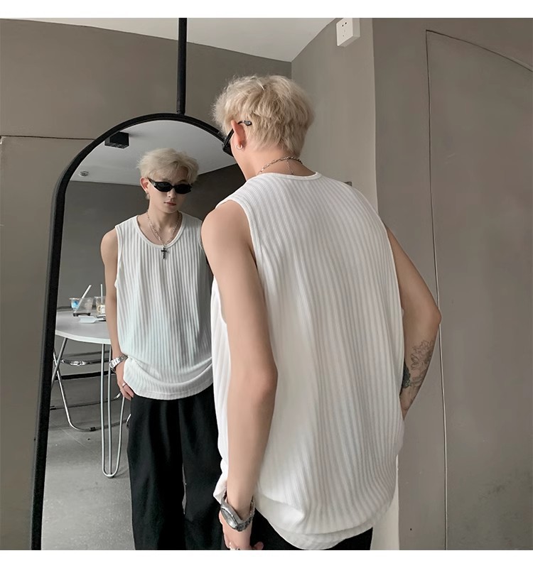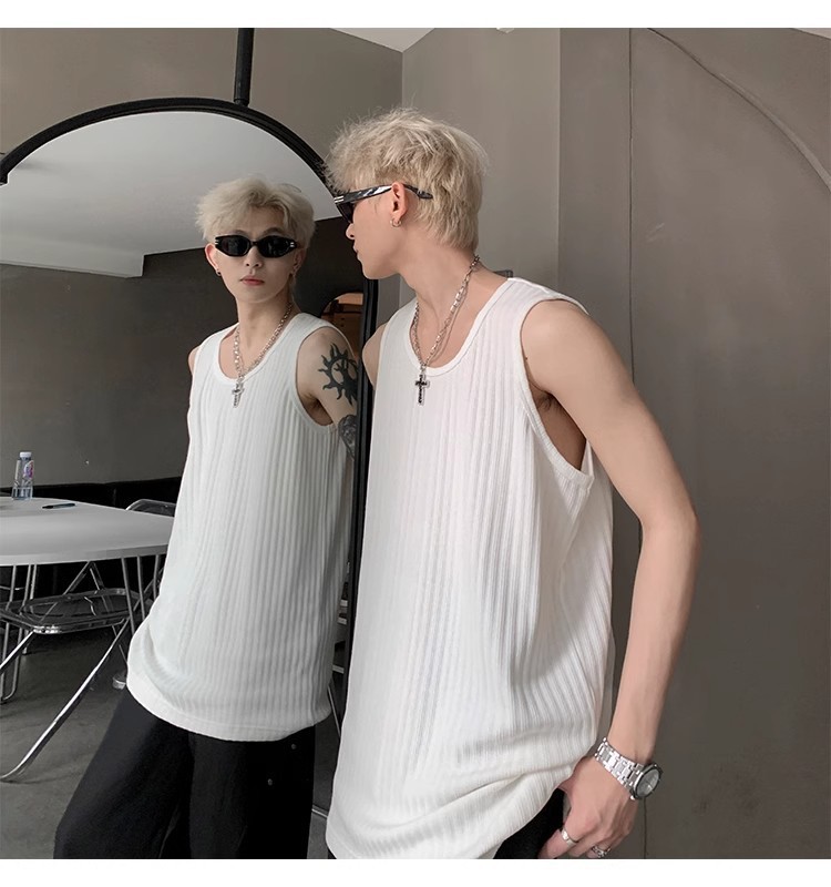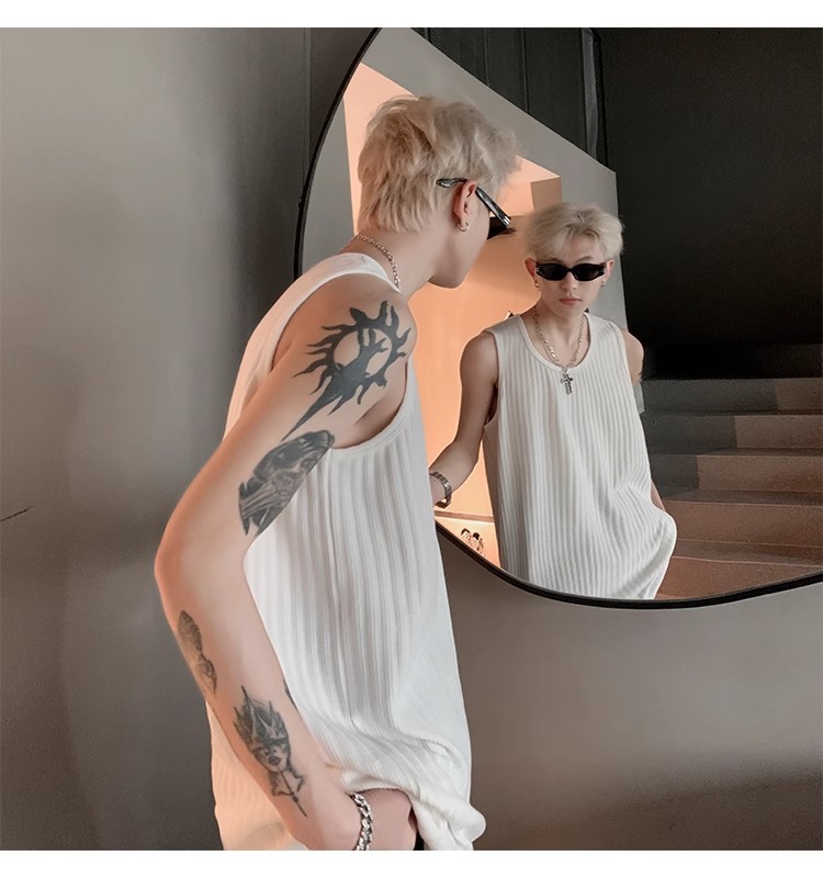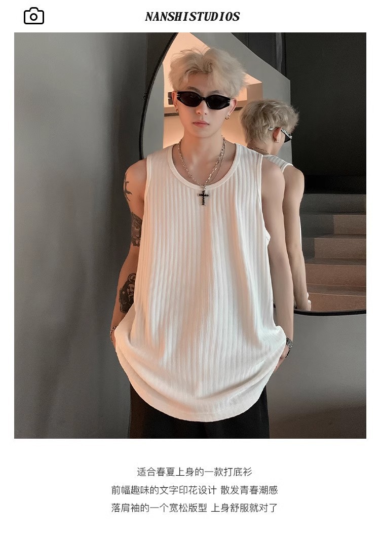 여름 질감의 아이스 실크 스레드 조끼 남성용 루즈 스포츠 피트니스 조끼 민소매 티셔츠 내부 레이어링 탑스토어 가기