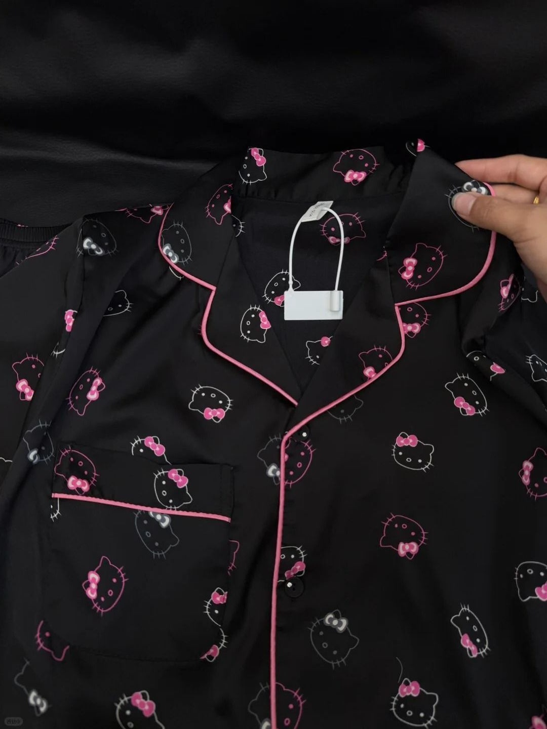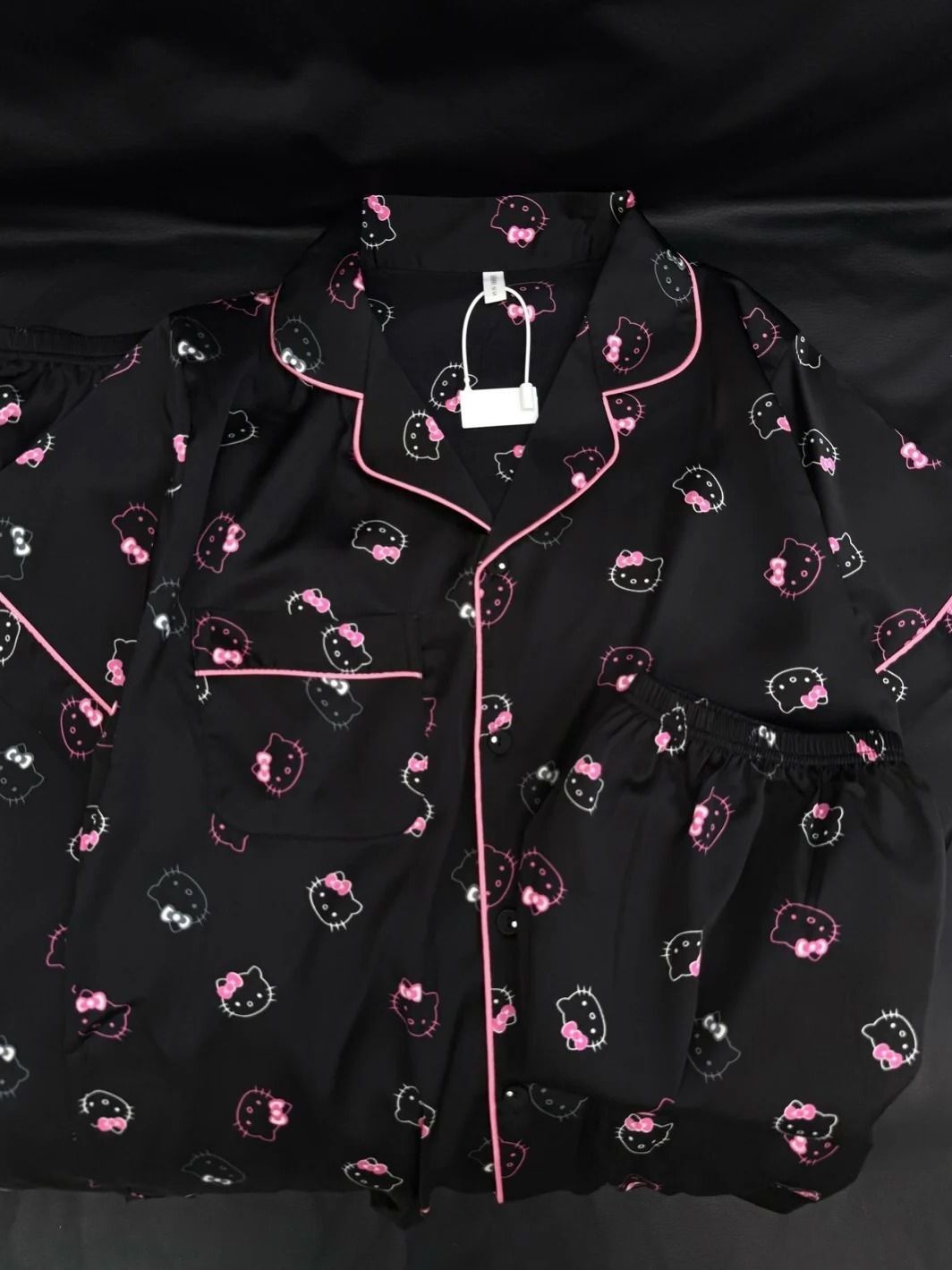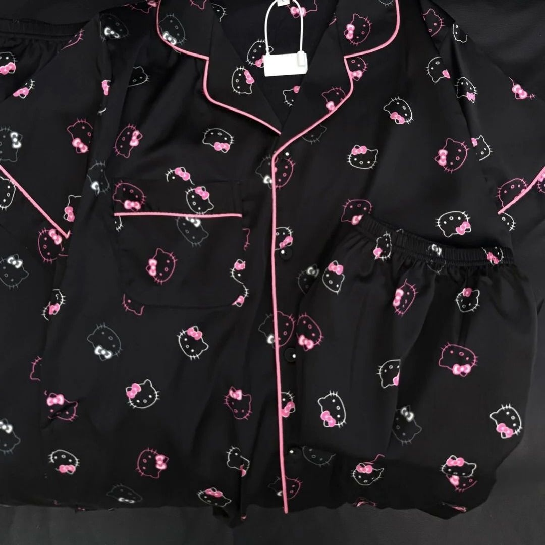 귀여운 블랙 헬로 키티 파자마 여성의 새로운 반팔 반바지 여름 얇은 홈 의류 세트 의류스토어 가기