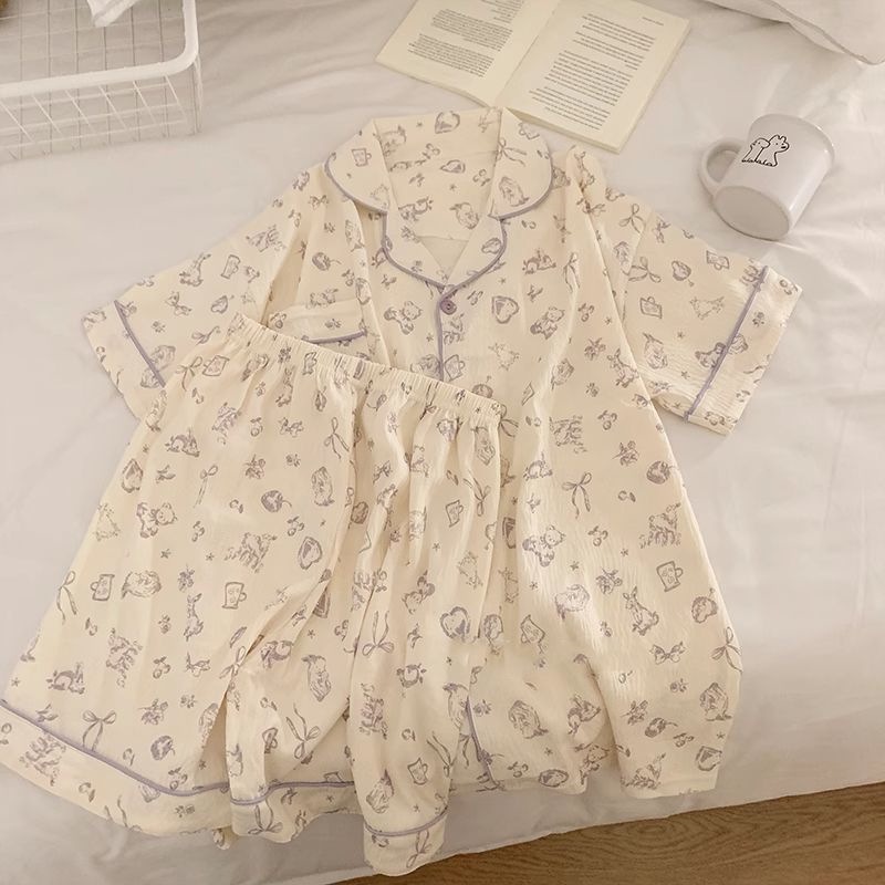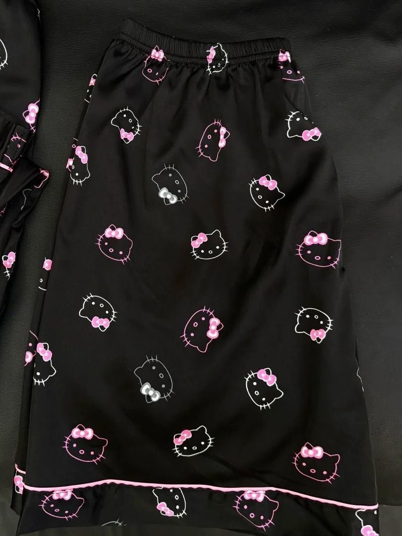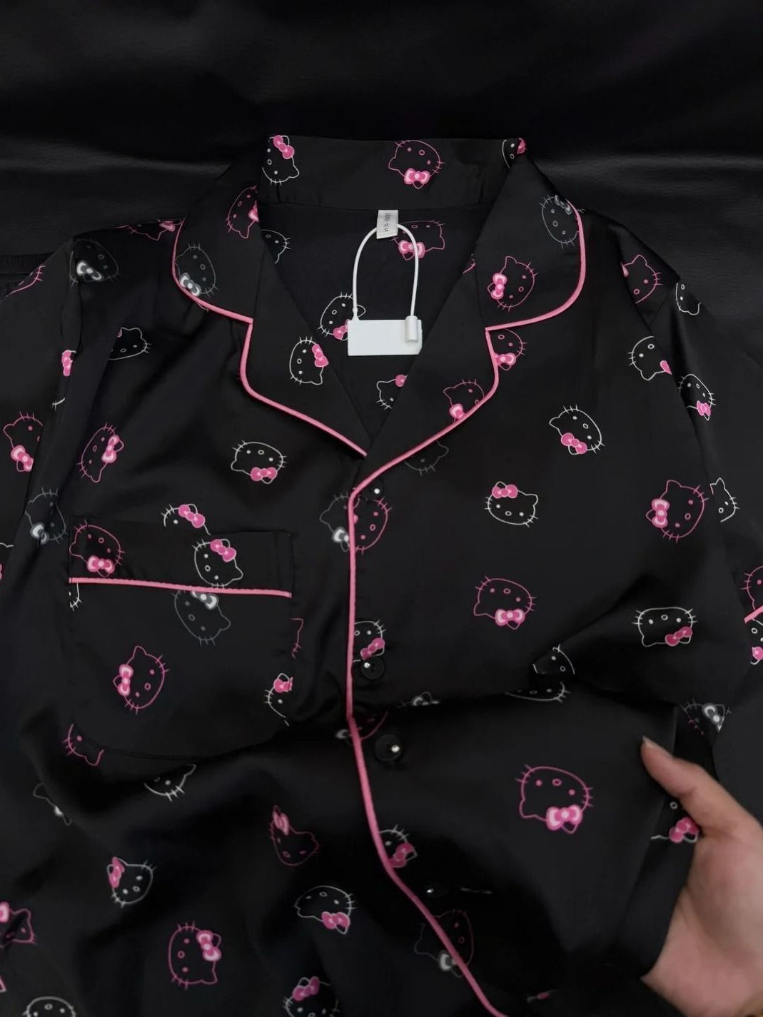 귀여운 블랙 헬로 키티 파자마 여성의 새로운 반팔 반바지 여름 얇은 홈 의류 세트 의류스토어 가기