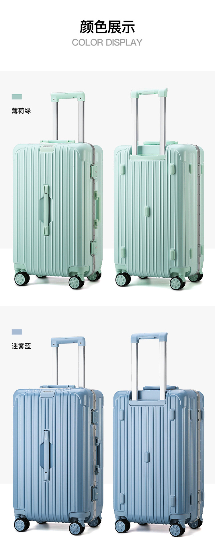 20inch 여행 가방 범용 휠 알루미늄 프레임 초경량 휴대용 탑승 케이스 학생 트롤리 가방 여행 가방