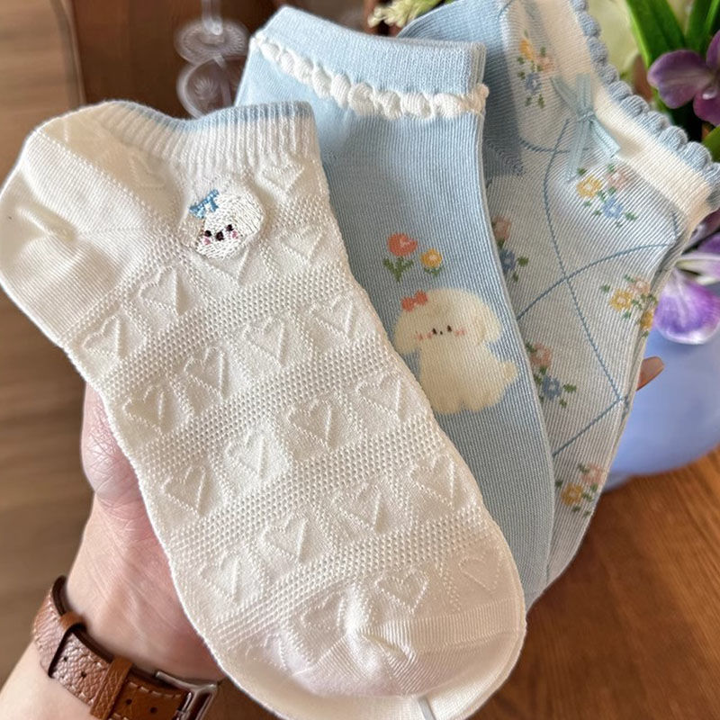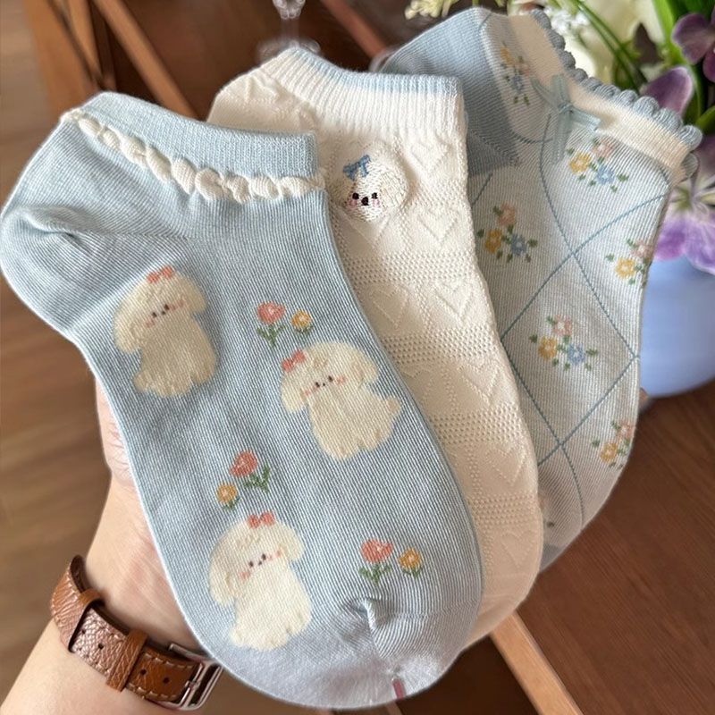 여름 얇은 여성 양말 봄과 여름 메쉬 통기성 만화 강아지 활 일본 소녀 여름 얕은 입 짧은 양말스토어 가기