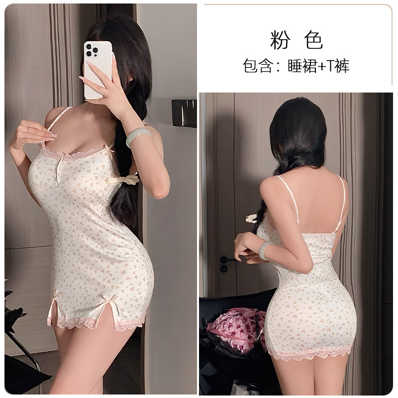 순수한 욕망 소녀의 잠옷 가슴 패드 보라색 레이스 꽃 슬링 울트라 짧은 엉덩이 꽉 나이트 드레스스토어 가기