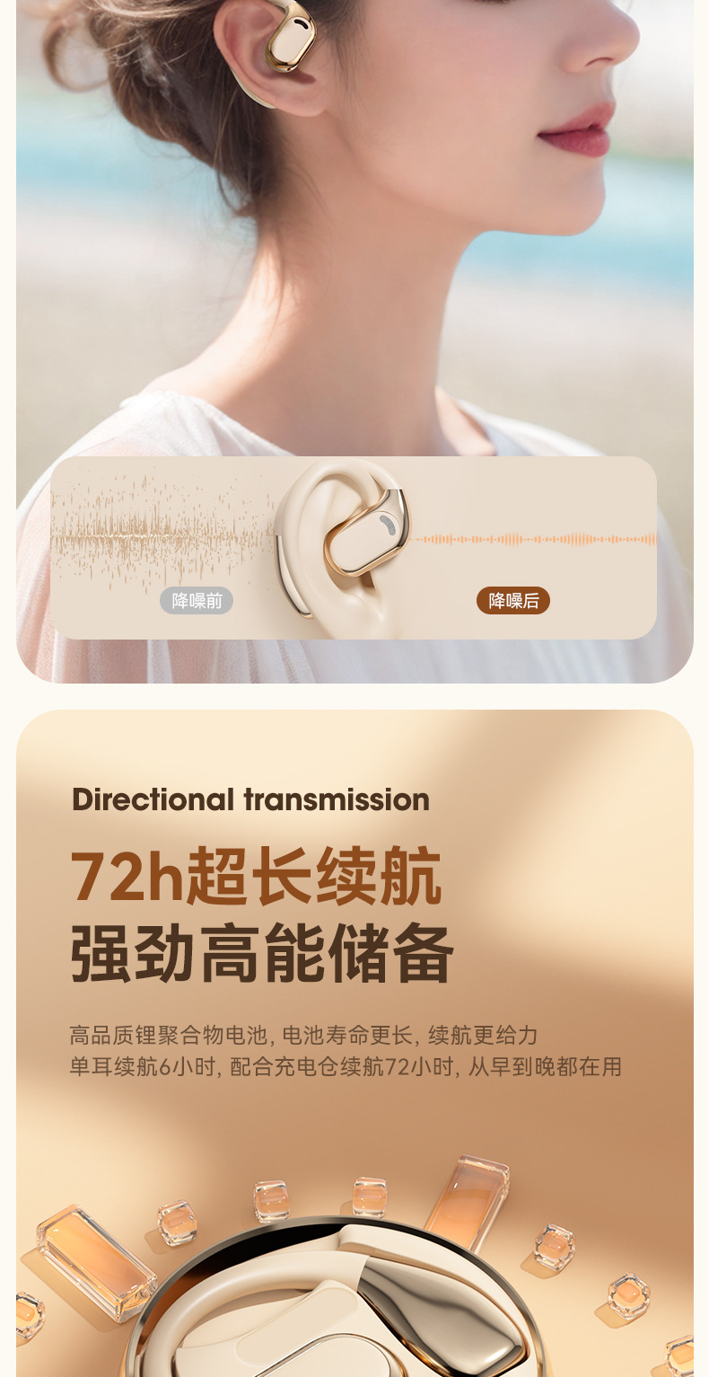 M76 블루투스 헤드셋 OWS 귀 매달린 오픈 스포츠 달리기 전화 개인 모델 AI 번역 144 언어 도매