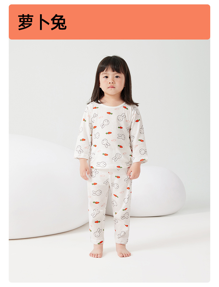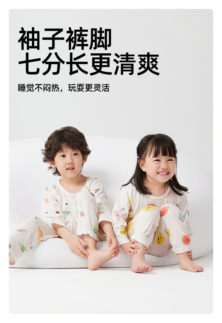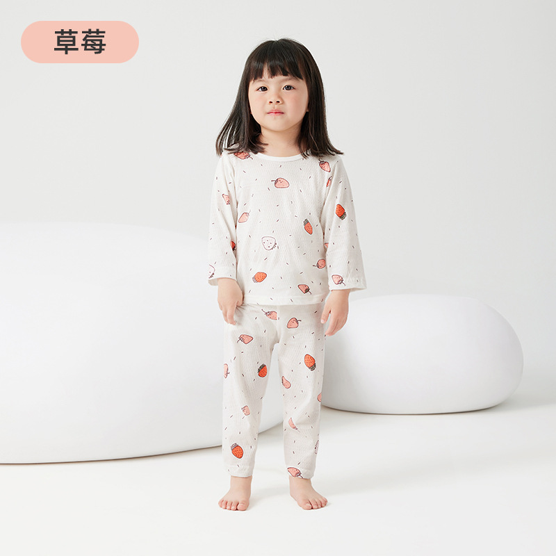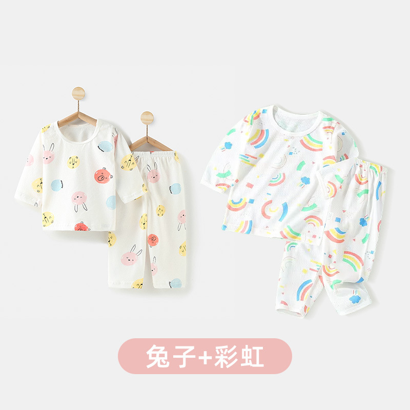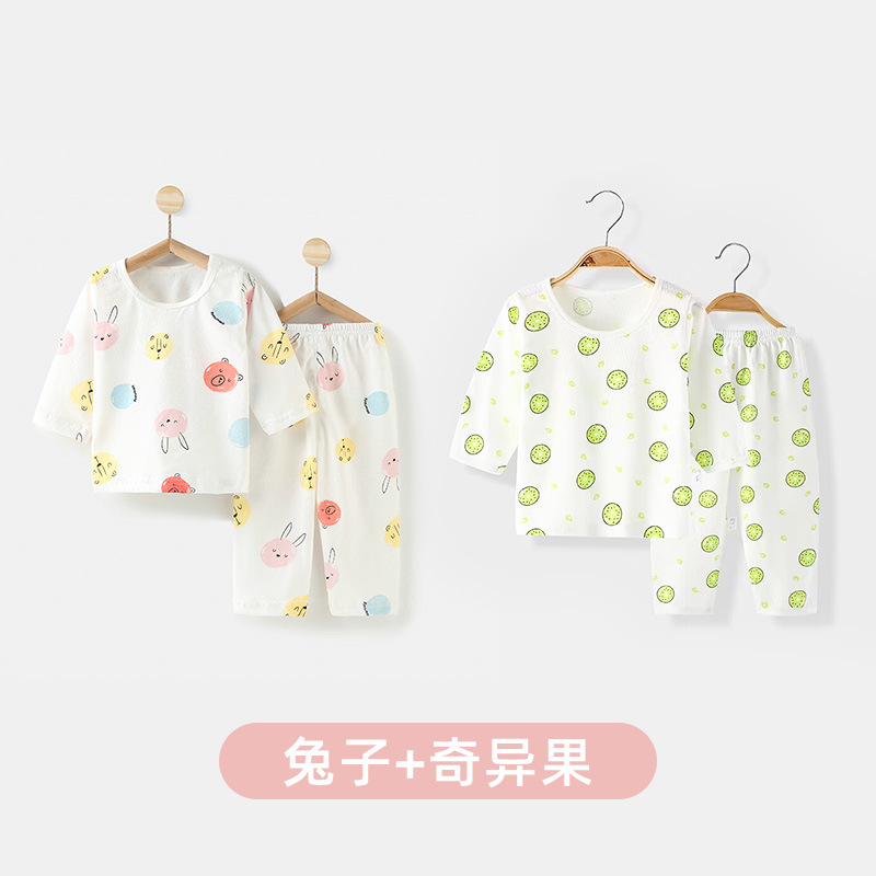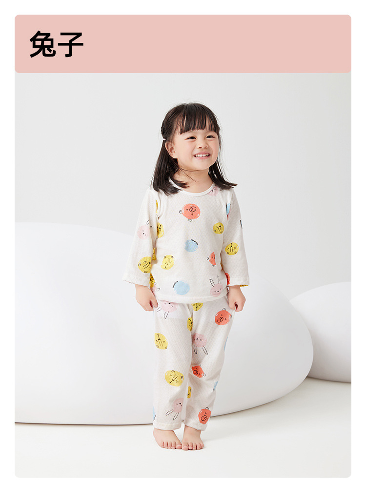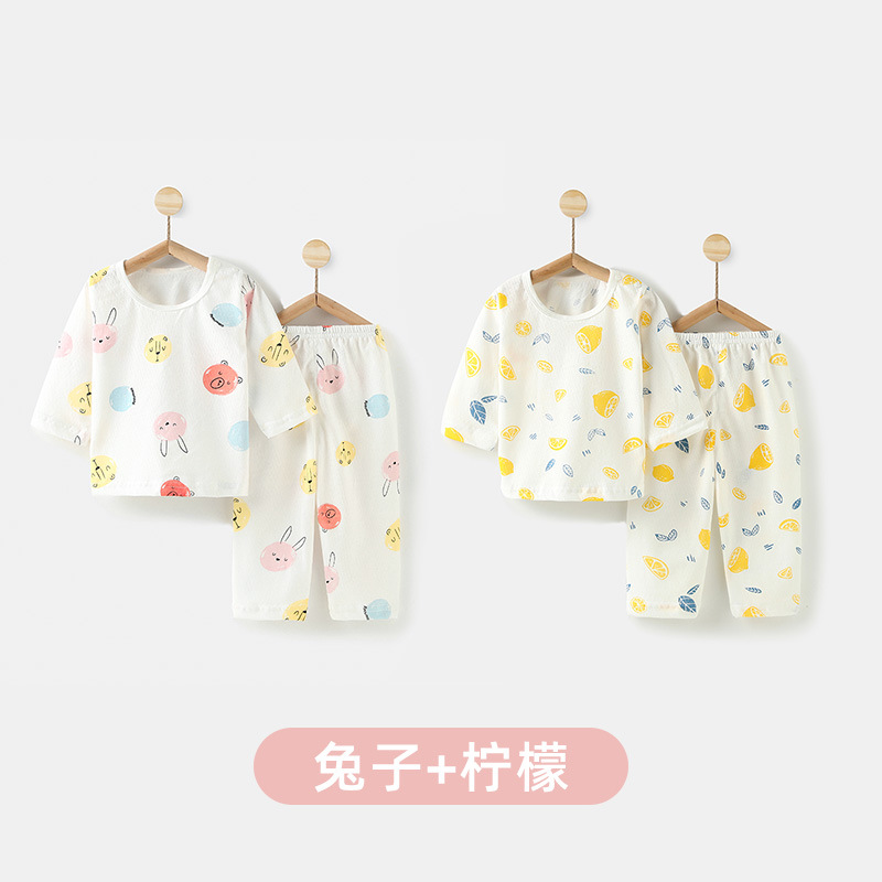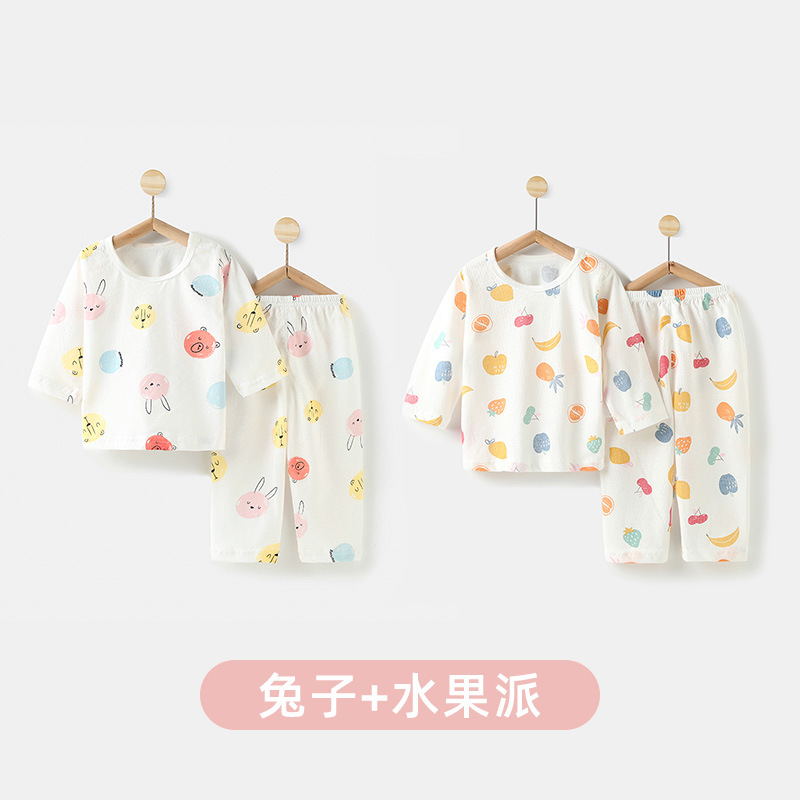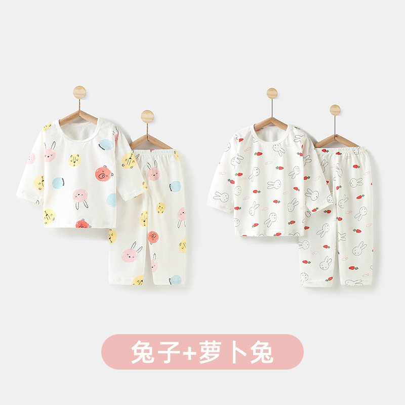 어린이 잠옷 순면 소년과 소녀 긴팔 가정 의류 세트 여름 얇은 어린이 아기 에어컨 의류 봄과 여름