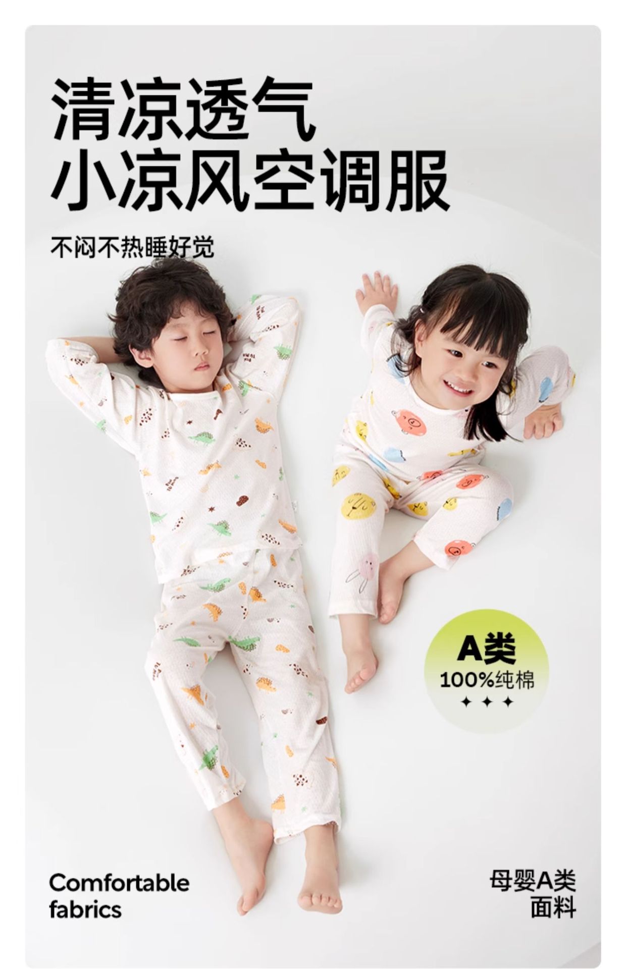 어린이 잠옷 순면 소년과 소녀 긴팔 가정 의류 세트 여름 얇은 어린이 아기 에어컨 의류 봄과 여름스토어 가기