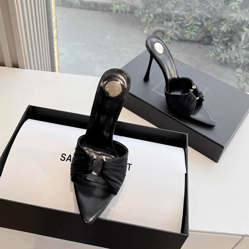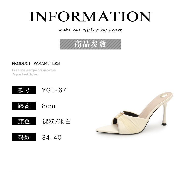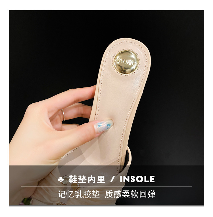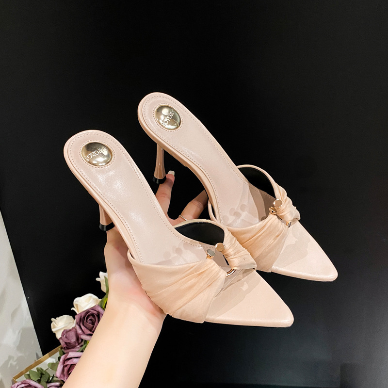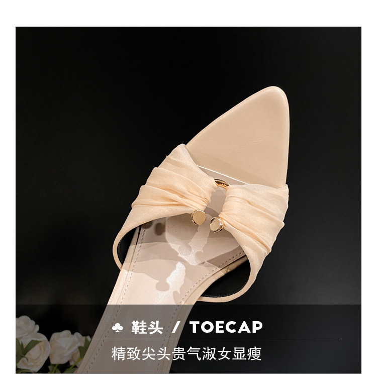 2025년 신상 여름 슬리퍼, 얇은 굽, 낮은 굽, 주름진 금속 버클, 뾰족한 발가락 오픈 토 샌들, 중간 굽, 얇은 굽 여성화스토어 가기