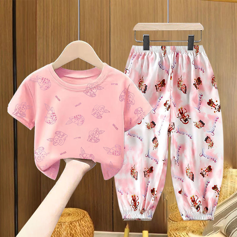 소년과 소녀 정장 여름 2025 새로운 어린이 반팔 모기 방지 바지 아기 캐주얼 반팔 여름 옷 어린이를위한스토어 가기